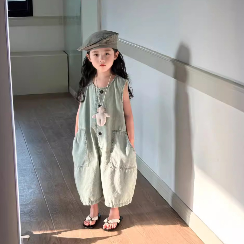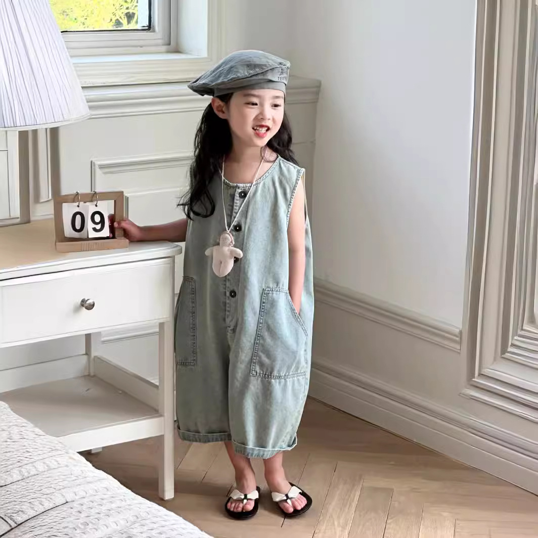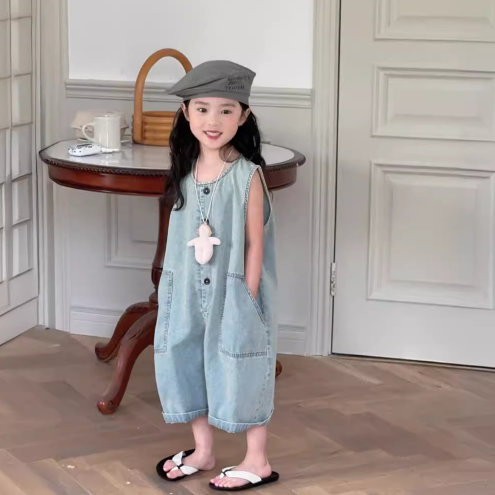 | nameOriginal | South Korea Children's Clothing Girls Retro Soft Waxy Denim Sleeveless Jumpsuit Summer New Baby Cute Loose Jumpsuit |