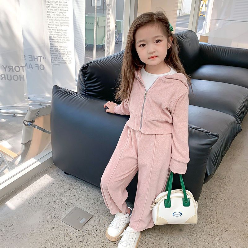 | nameOriginal | South Korea children's clothing girls sports suit 2024 autumn children's hooded zipper shirt straight pants two-piece set tide |