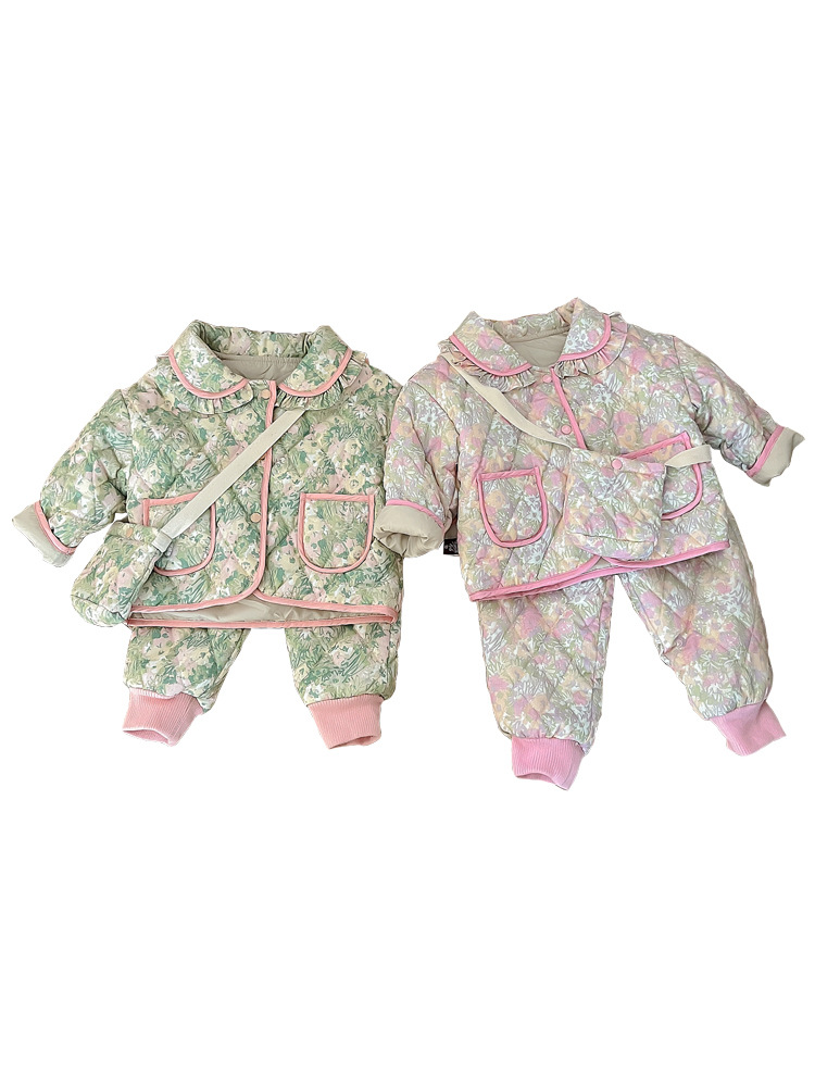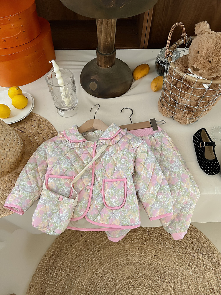 South Korea children’s clothing new autumn and winter children’s cotton-padded clothes suit small and medium girls thickened floral down cotton-padded clothes three-piece set