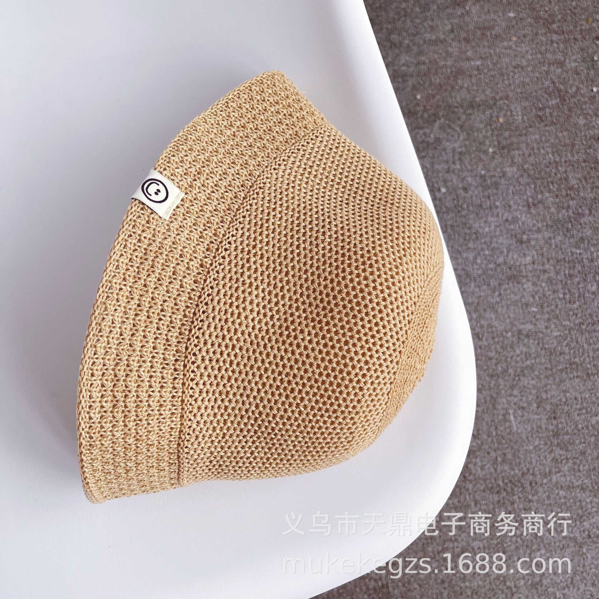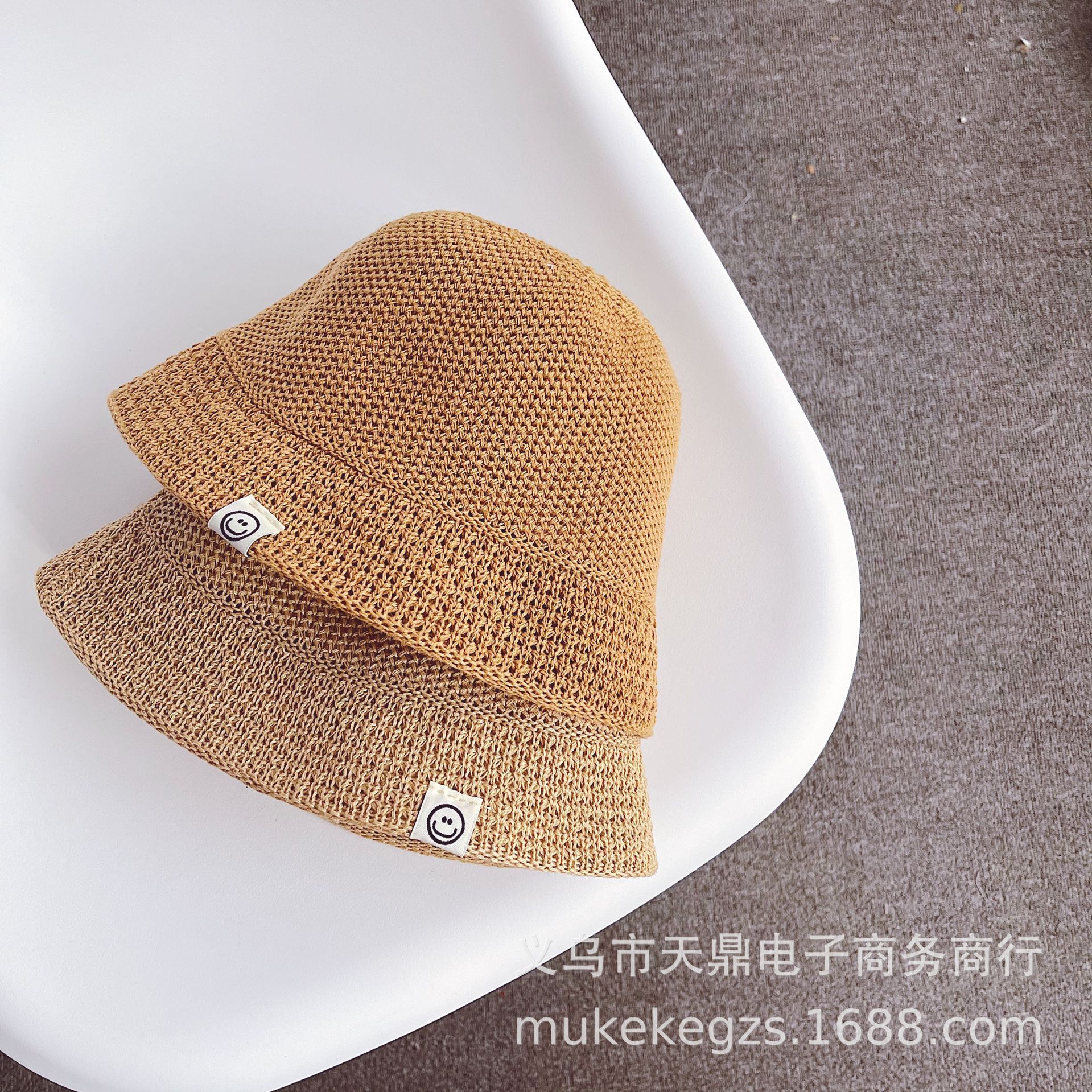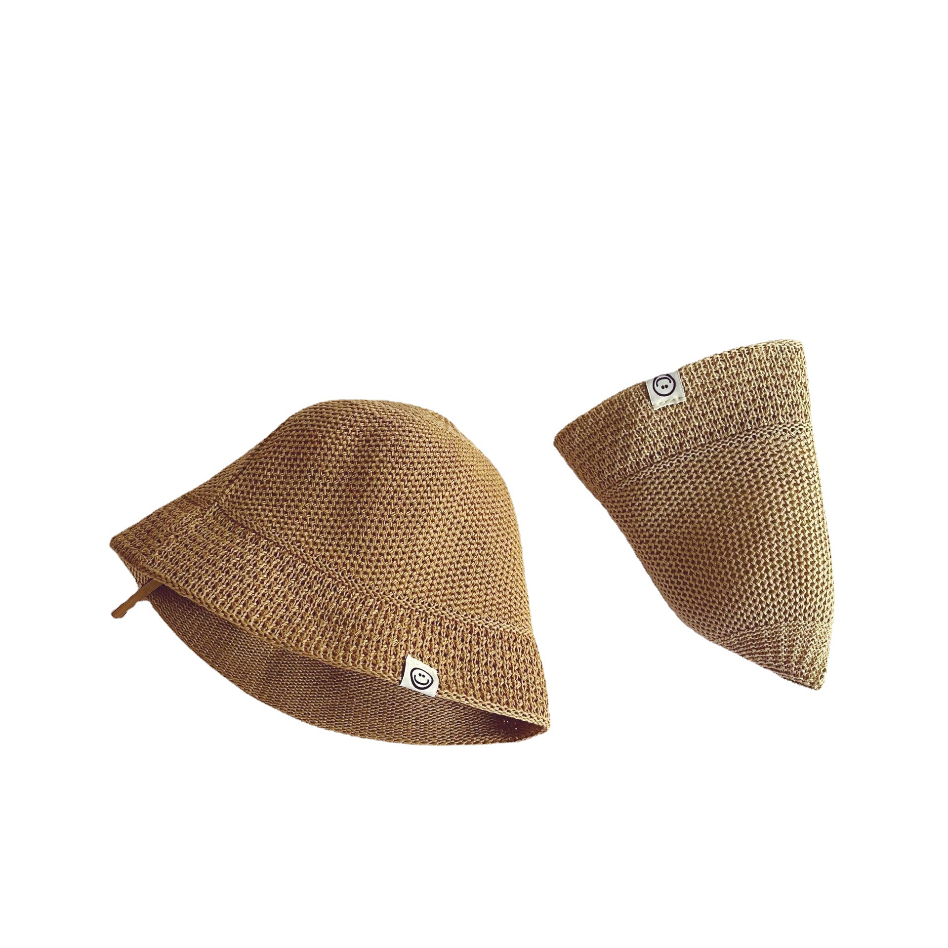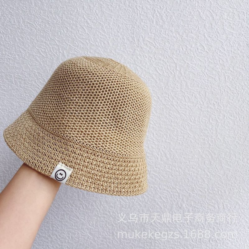 South Korea children’s straw hat summer breathable smiley face label boys and girls sunshade bucket hat solid color fisherman hat basin hat