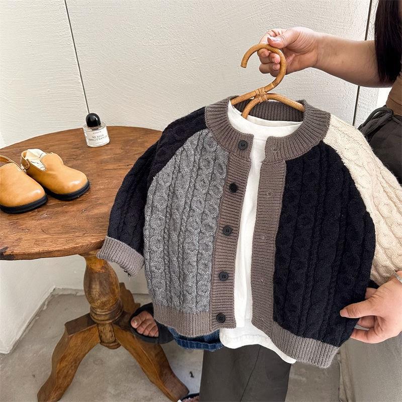 | nameOriginal | South Korea children's sweater 2023 autumn boys and girls color contrast twist knitted cardigan baby color matching coat top tide |