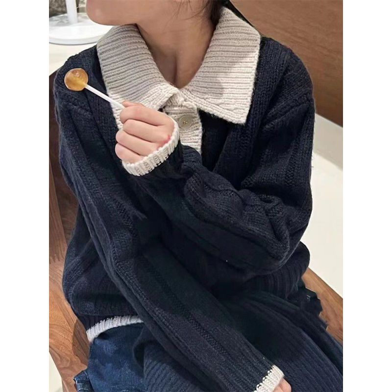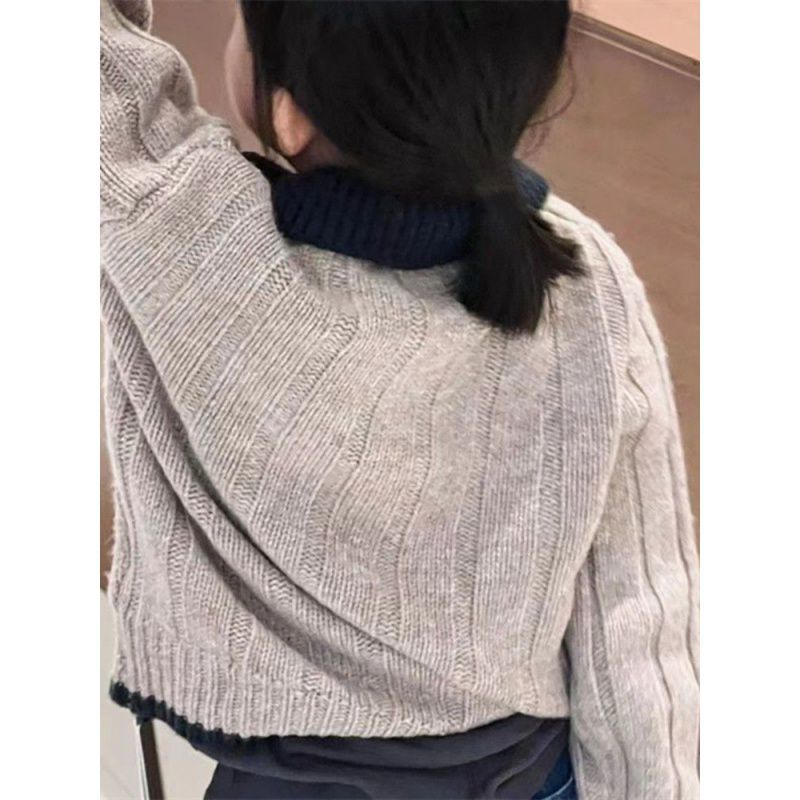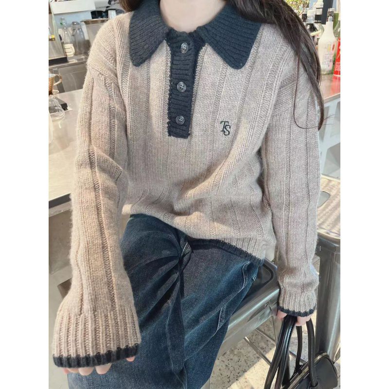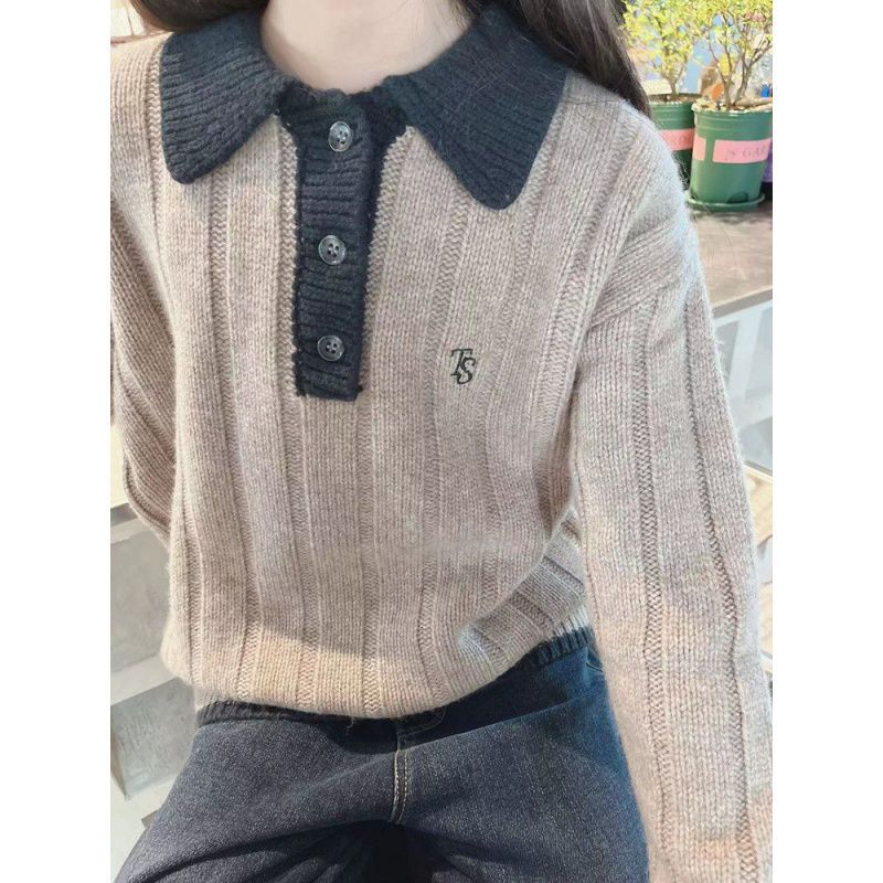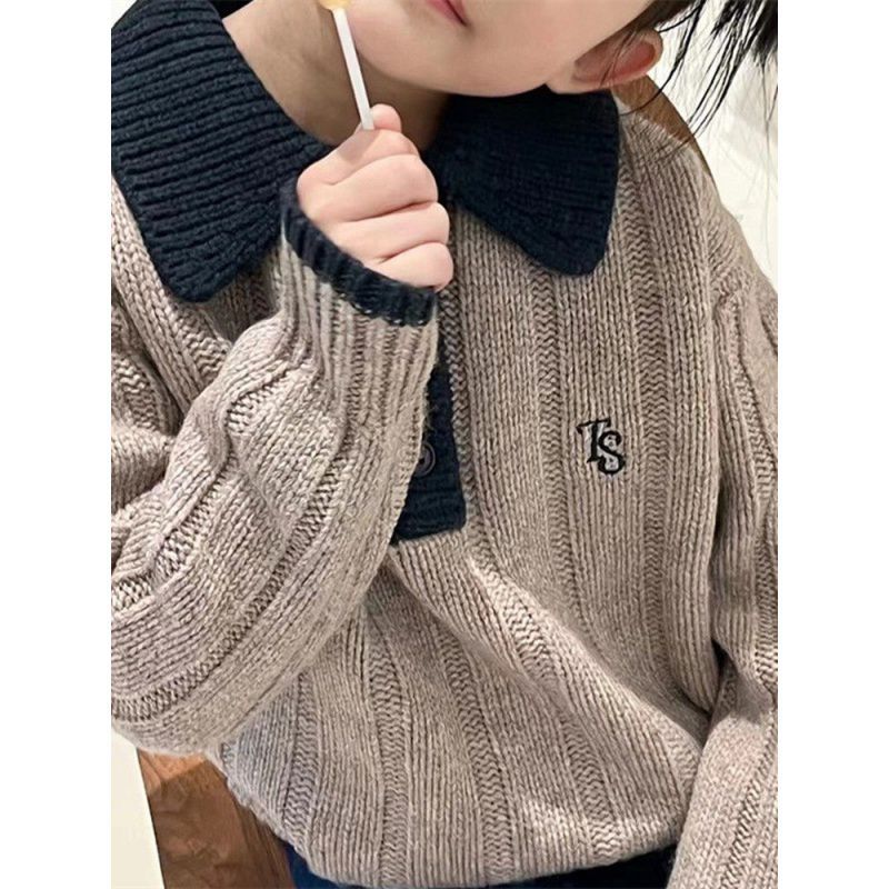South Korea Children's Wear Girls' Sweater Lapel 2024 Autumn Children's Knitted Shirt Boys' Top Long Sleeve