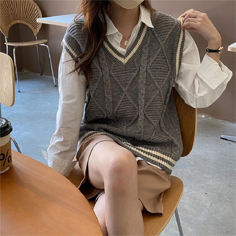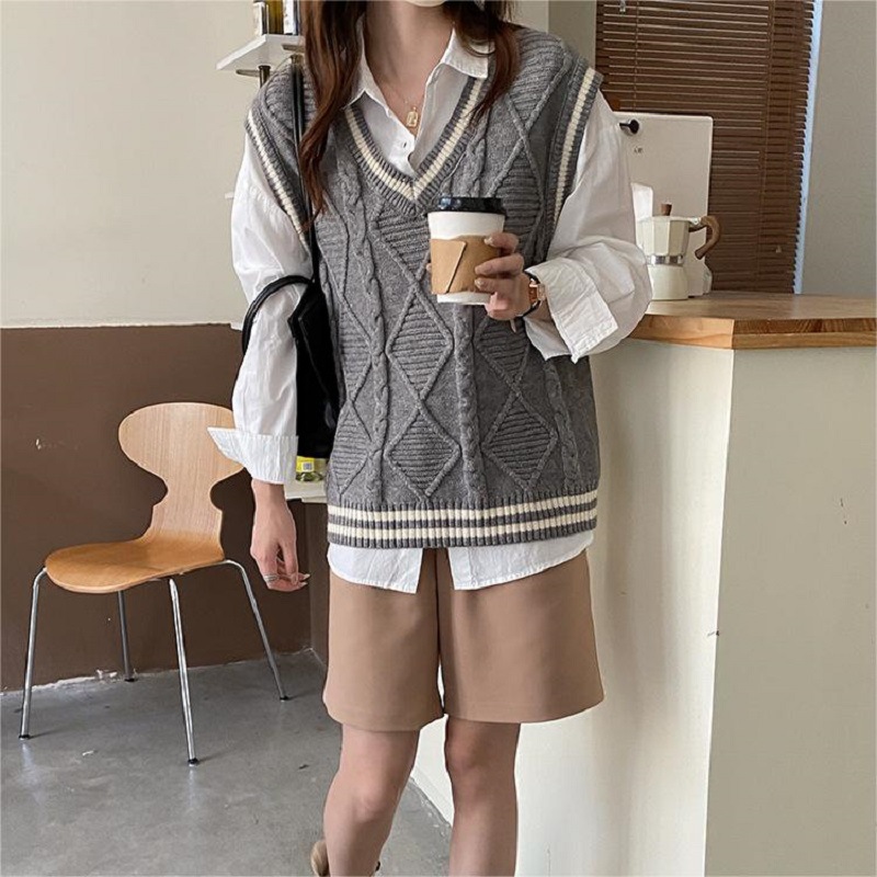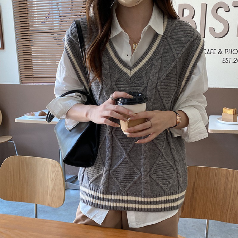 | nameOriginal | South Korea College Style Vest Sleeveless Sweater Vest Women's Age-reducing Striped Early Autumn Knitted Vest Women's Outer Wear Fashion |