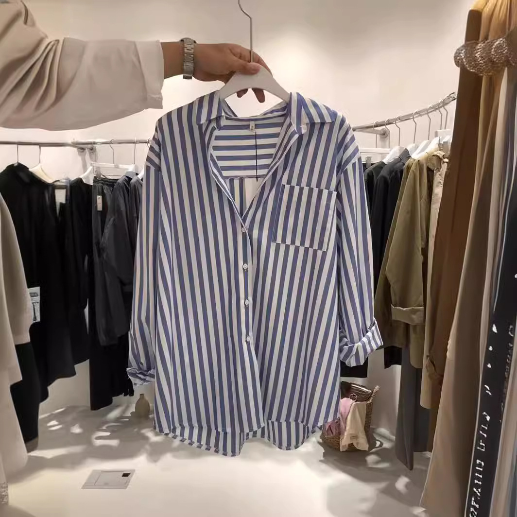 | nameOriginal | South Korea Dongdaemun 2023 Autumn New Style Fresh Vertical Striped Long Sleeve Shirt Women's All-match Coat Top Women |