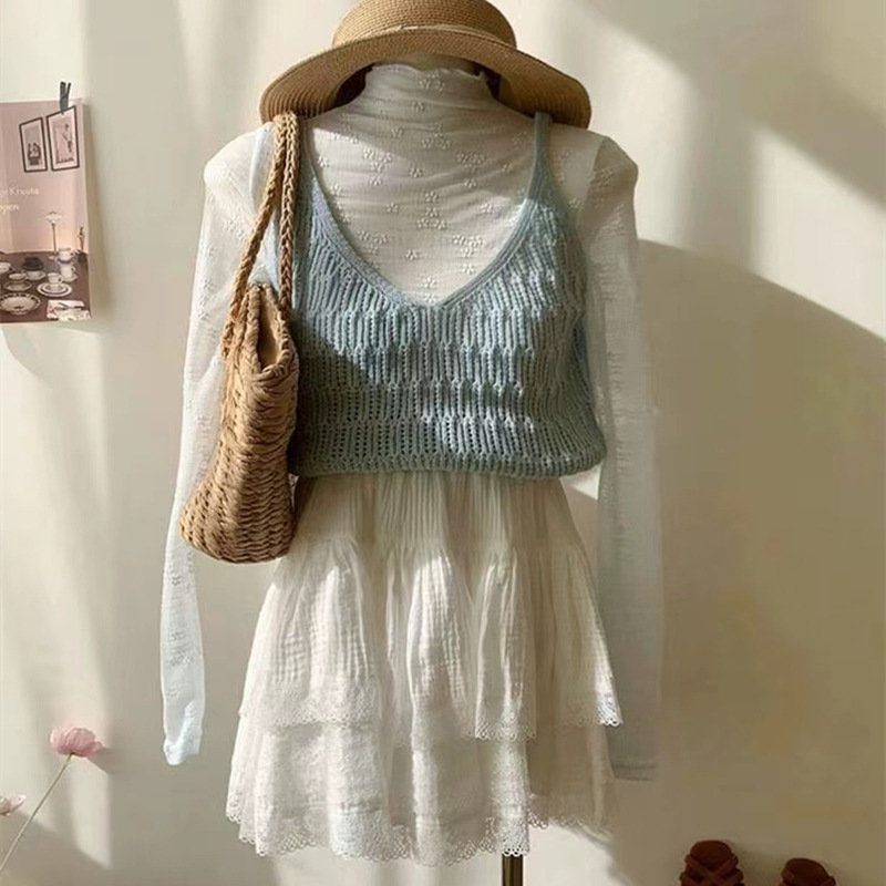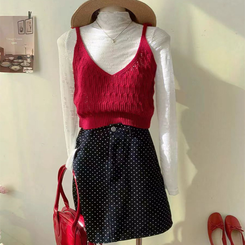 | nameOriginal | South Korea Dongdaemun 2024 Spring and Summer New Korean-style Slim-fit Short Simple Slimming All-match Knitted Sling Shirt |