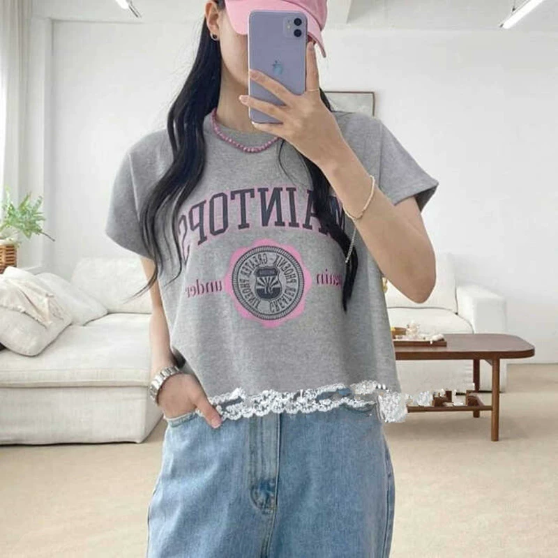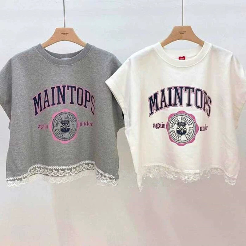| nameOriginal | South Korea Dongdaemun 2024 summer new lace sleeveless badge round neck lace letters casual short-sleeved T-shirt for women |