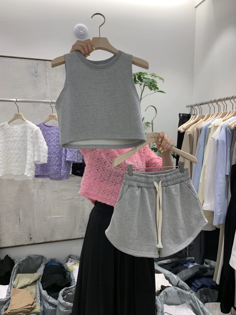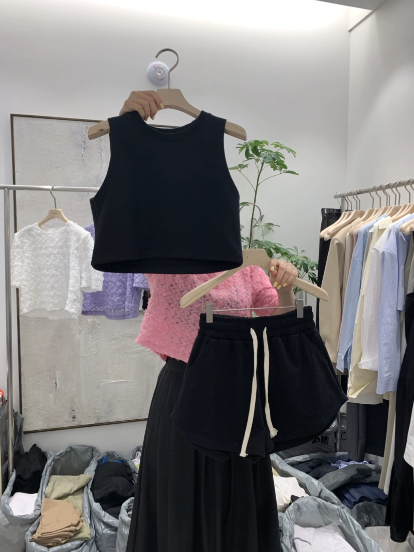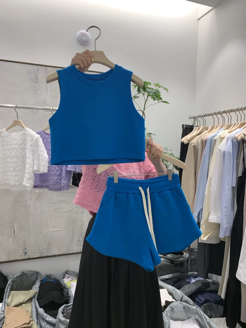 | nameOriginal | South Korea Dongdaemun 2024 summer new solid color sleeveless vest top + drawstring casual shorts two-piece set for women |