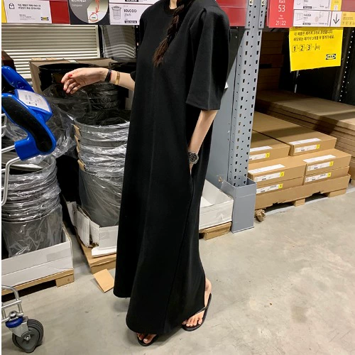 South Korea Dongdaemun ins 2024 summer new French retro round neck puff short-sleeved T-shirt dress long skirt