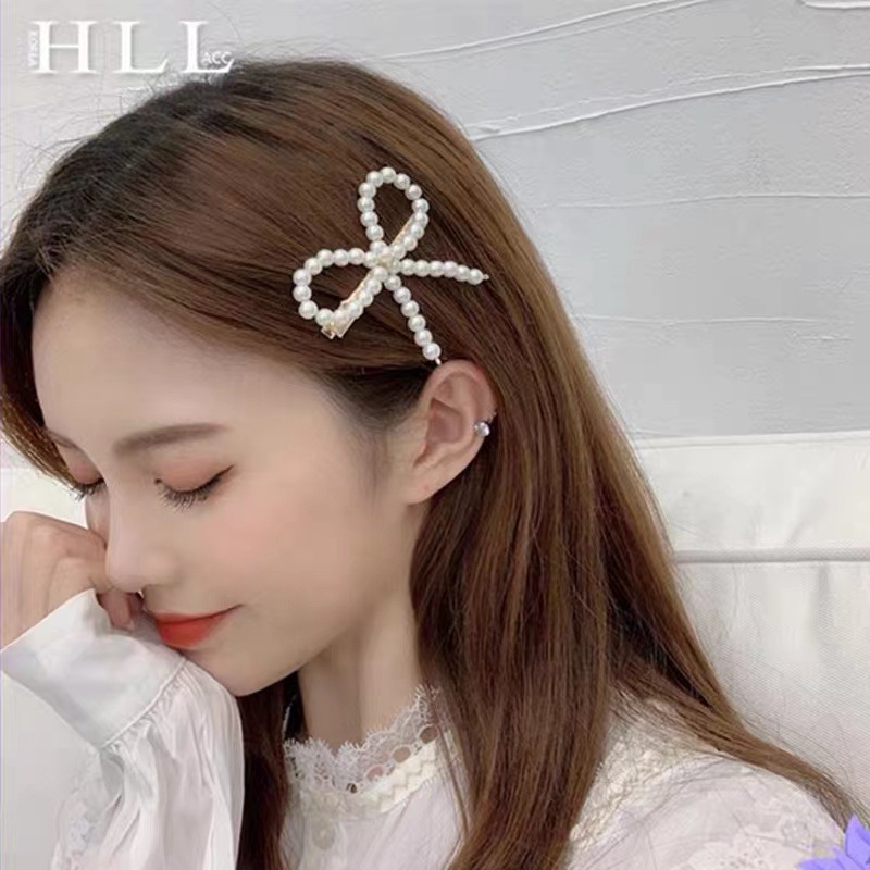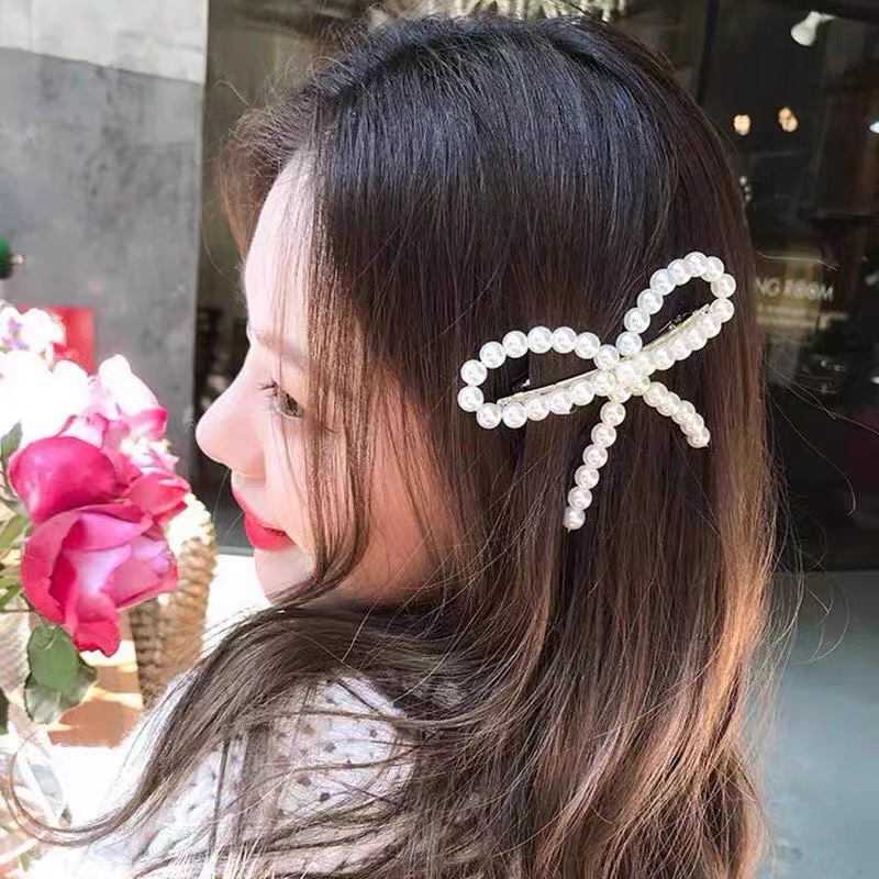 South Korea Dongdaemun Internet celebrity hair accessories ins sweet bow Pearl hairpin temperament duckbill clip bangs side clip