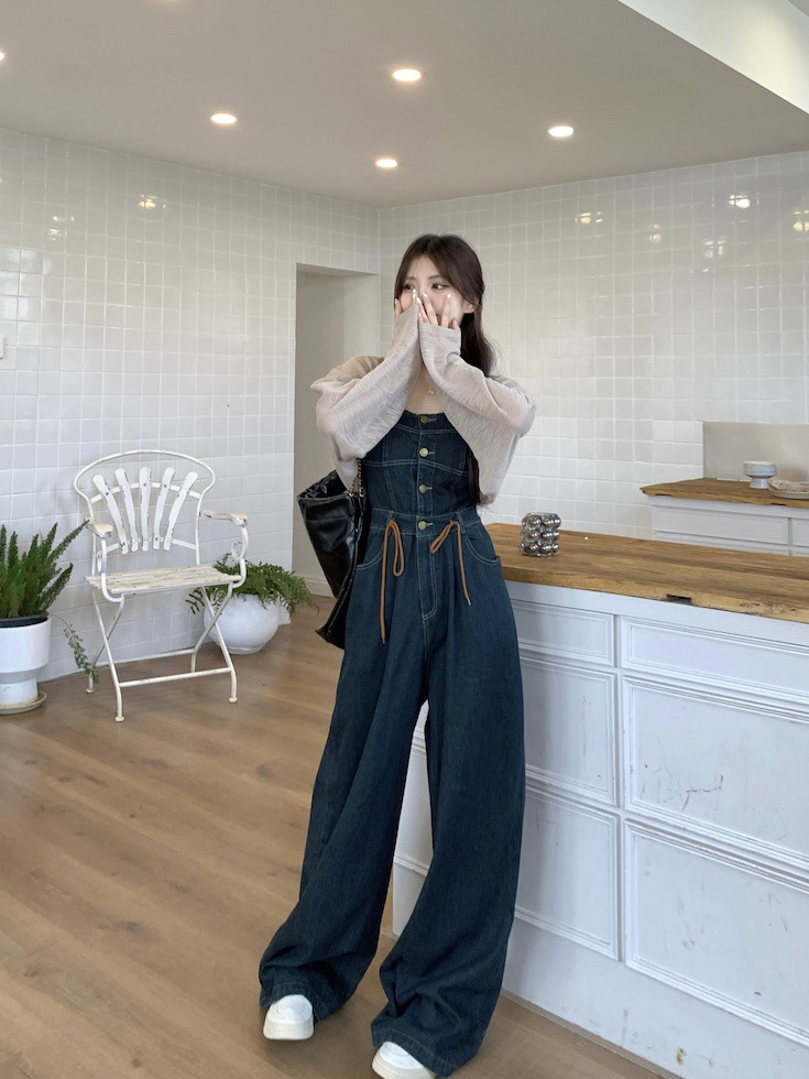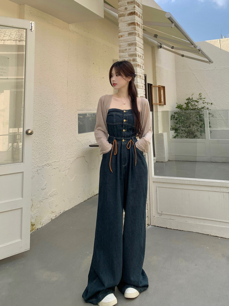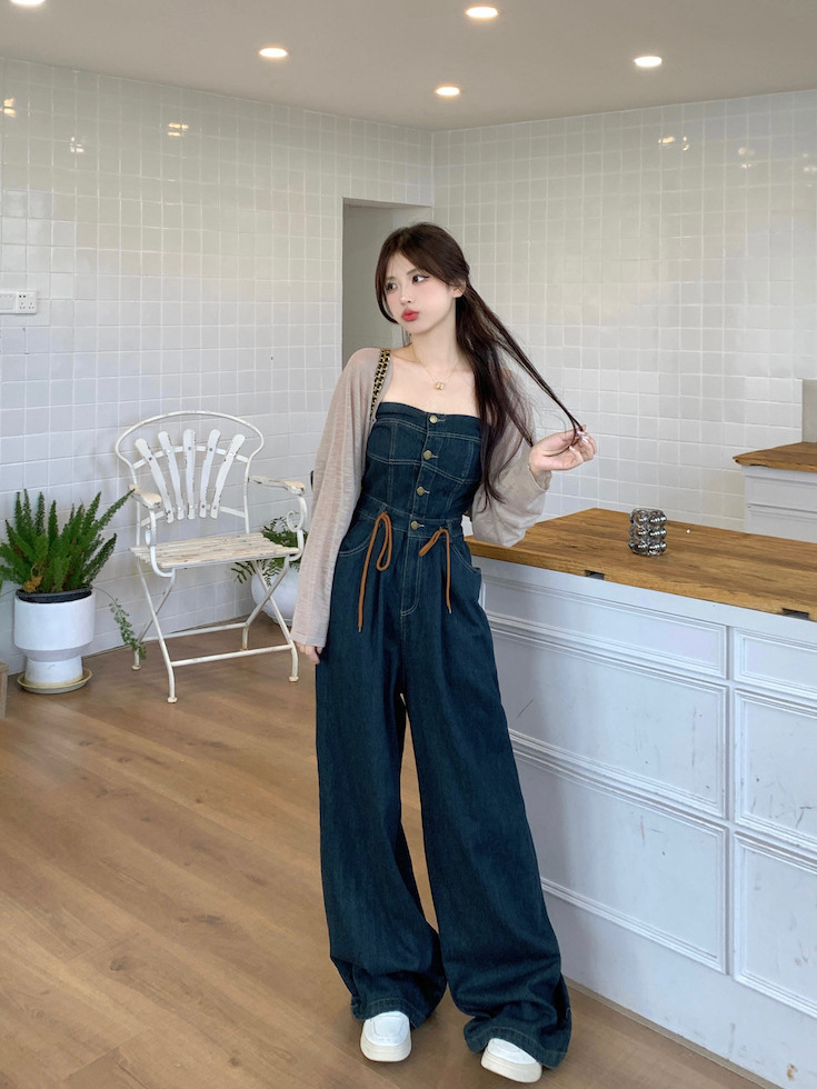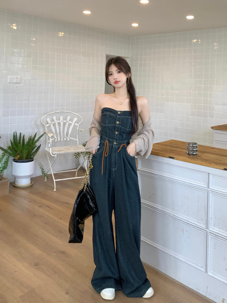 | nameOriginal | South Korea Dongdaemun Korean Style Retro dark blue New Strapless Casual Straight Drawstring Tight Waist One-piece Jeans |