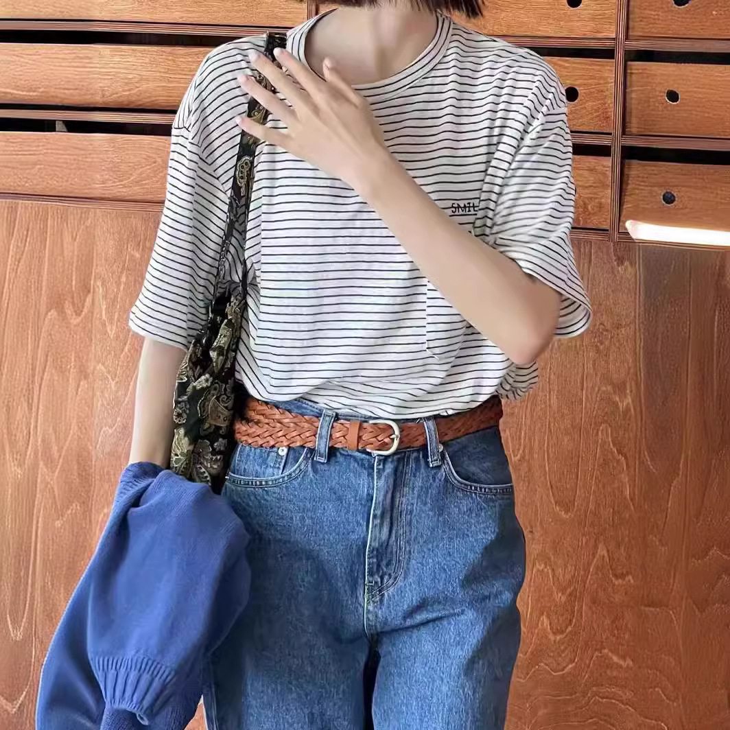 | nameOriginal | South Korea Dongdaemun SELFS Spring and Summer New Round Neck Striped Loose Slim T-shirt Base Shirt for Women |