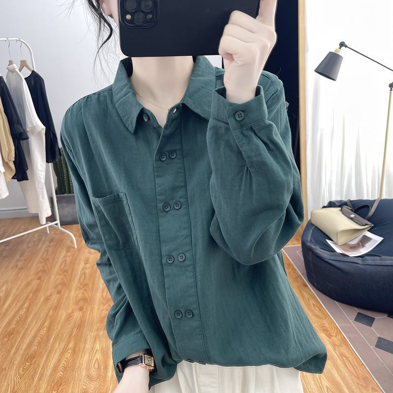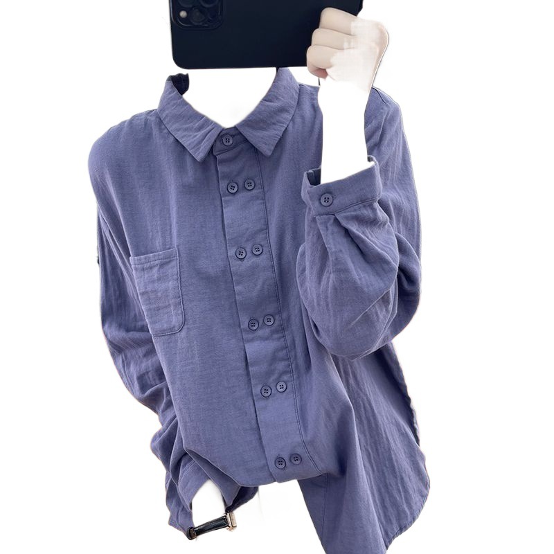 | nameOriginal | South Korea Double-breasted Cotton Long-sleeved Shirt Women's Spring and Autumn Polo Collar Inner Top Loose Design Base Shirt |