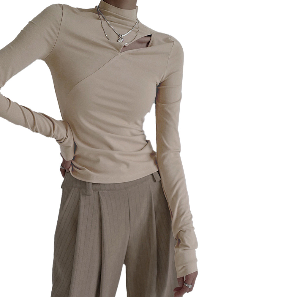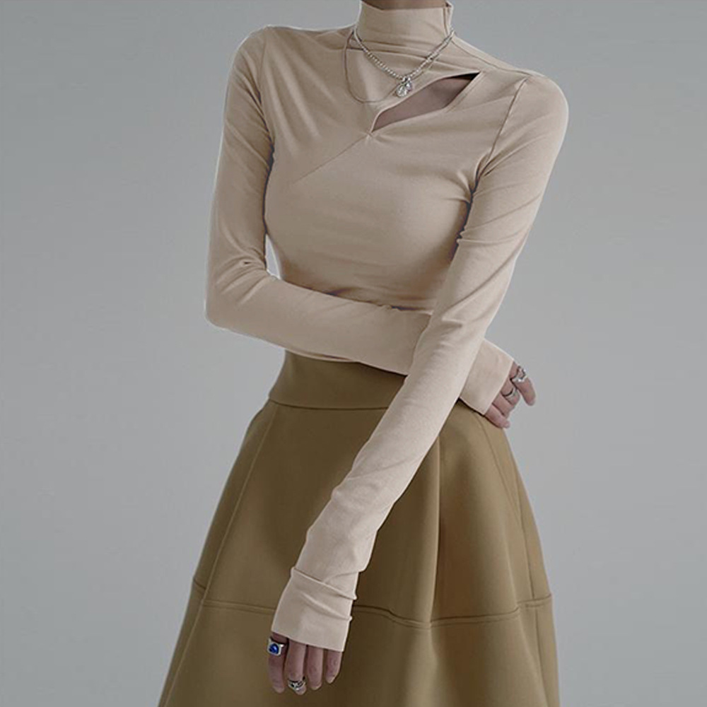 | nameOriginal | South Korea Fashionable Early Autumn Top Women's 2023 New Crossbody Collar Open Shoulder Hollow Design Sense Slim-fit Long-sleeved T-shirt |