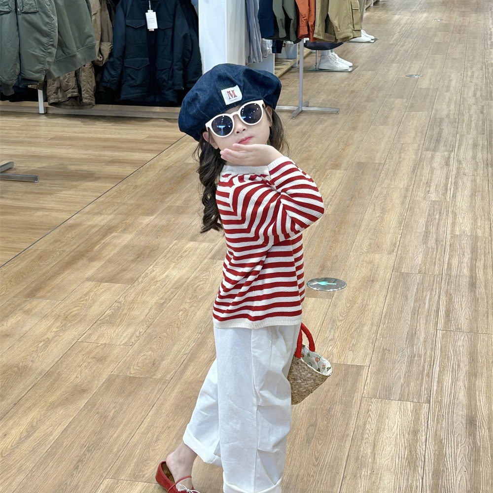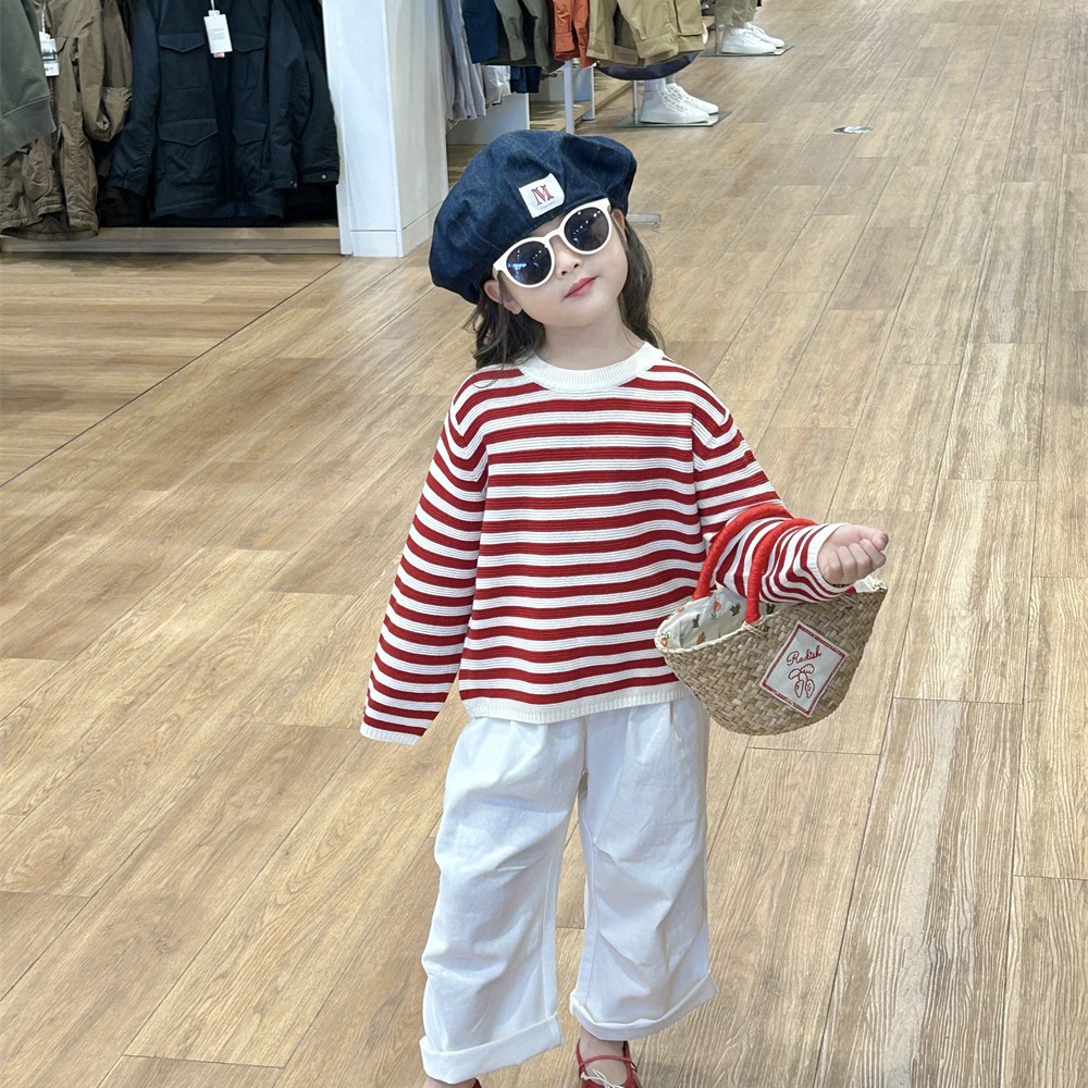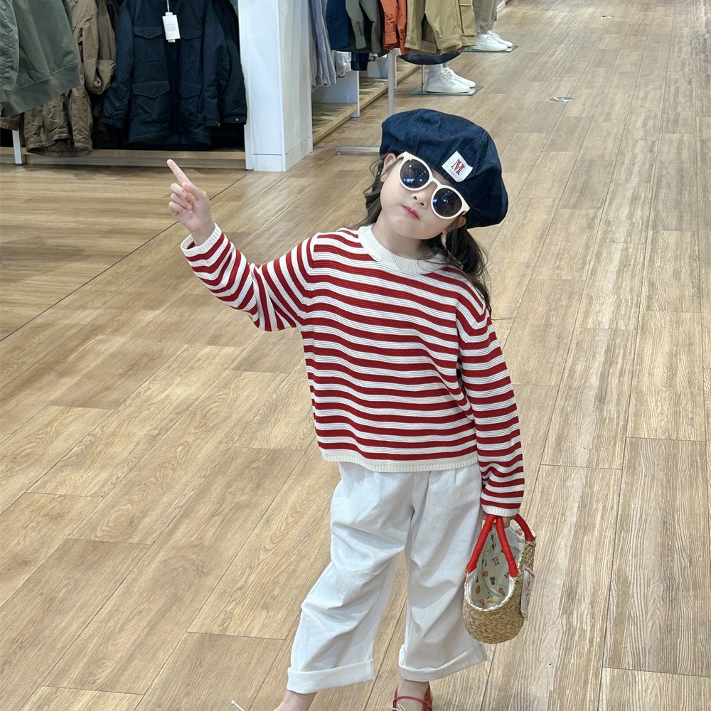 | nameOriginal | South Korea girls' striped sweater T-shirt 2024 spring new children's round neck top children's pullover fashion |