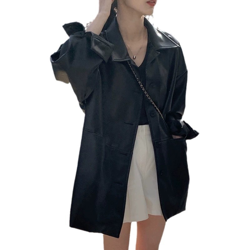 | nameOriginal | South Korea Handsome Lapel Single-breasted Leather Jacket Women's Autumn 2024 New Loose All-match Imitation Leather Jacket Top |