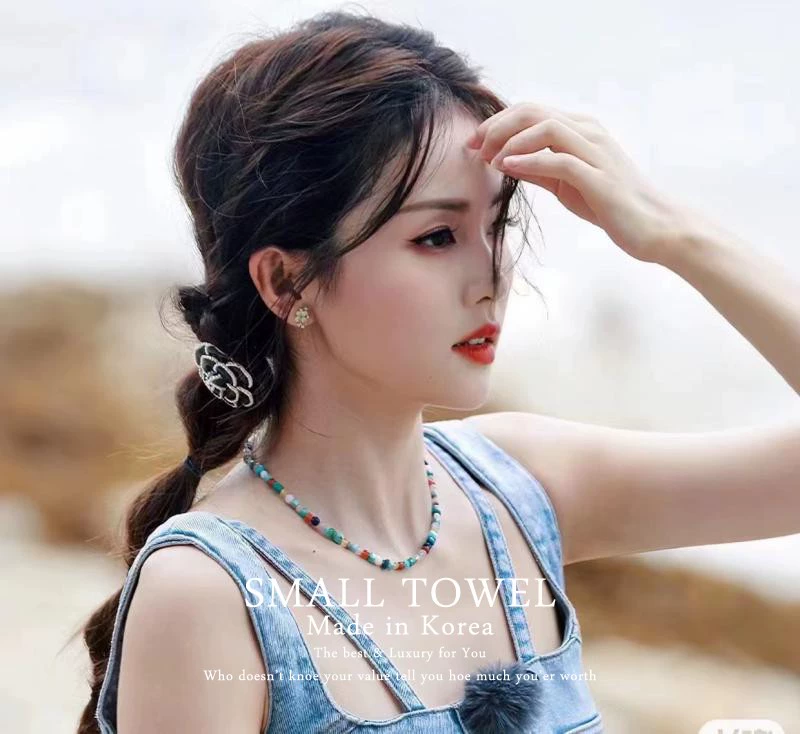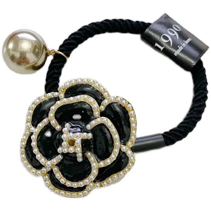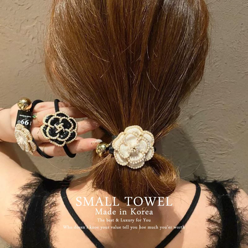 South Korea imported 1990 high-end small fragrance pearl camellia rubber band ball headband hair band white deer same style hair accessories