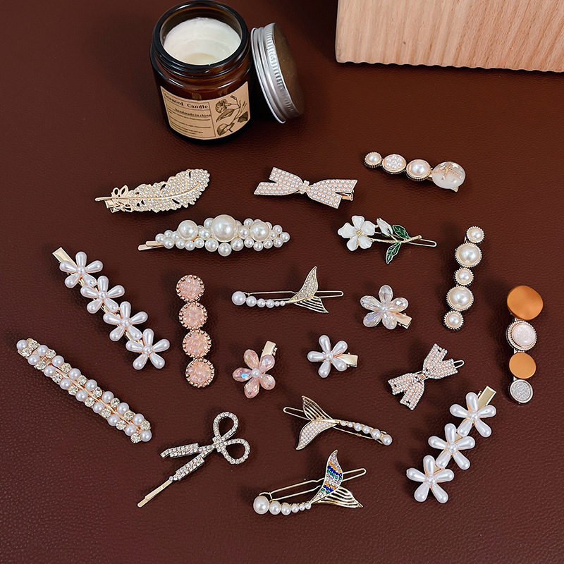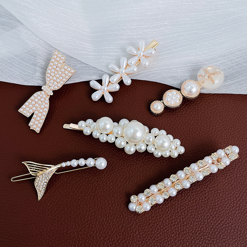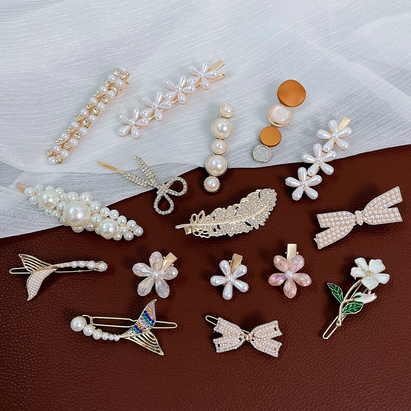 South Korea Ins Elegant Pearl Hairpin Women’s Side Bangs Clip Duckbill Clip Cyber Celebrity Hairpin Clip One-word Clip Headwear