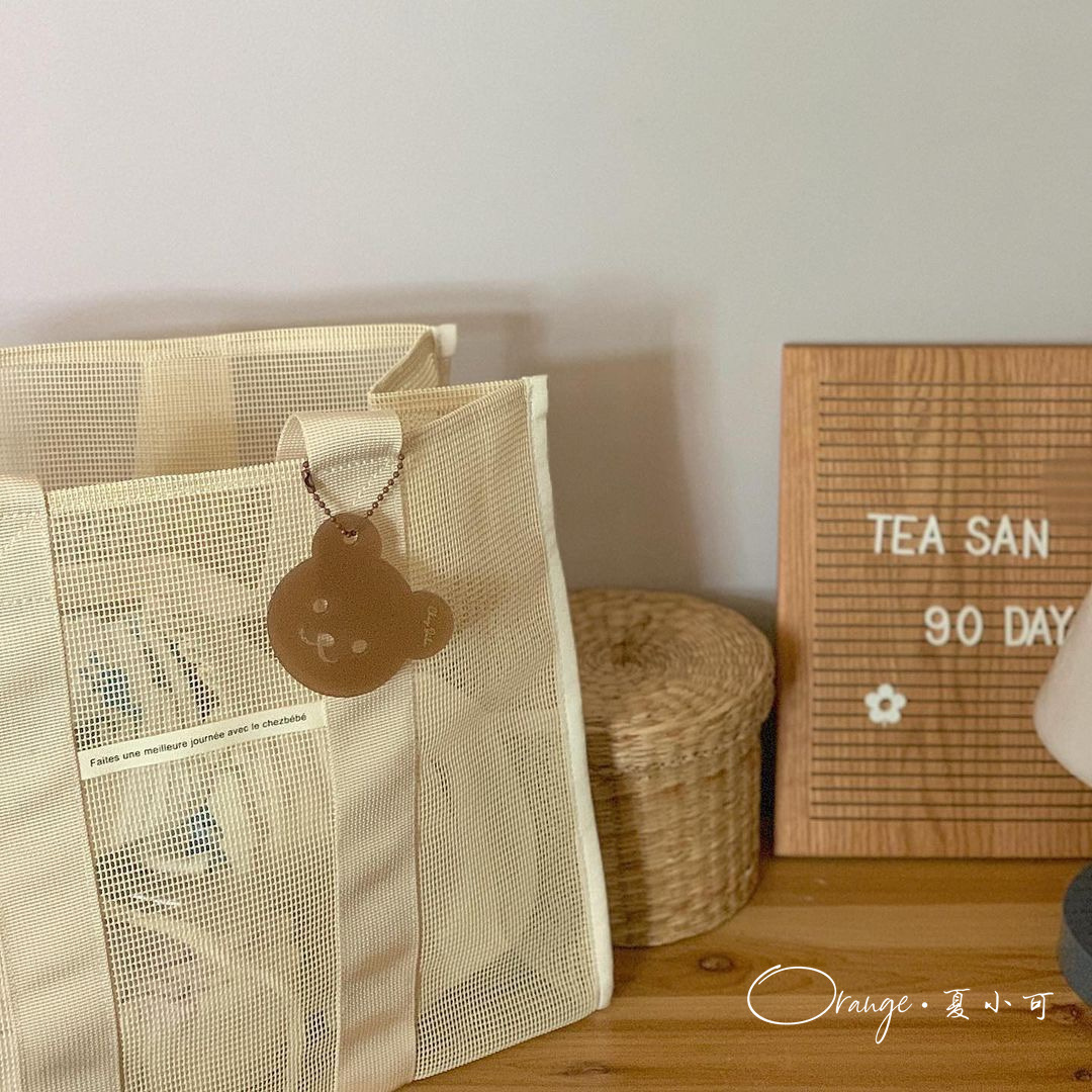 South Korea ins shoulder mesh beach bag mesh handbag swimming fitness storage khaki bear mother and baby bag