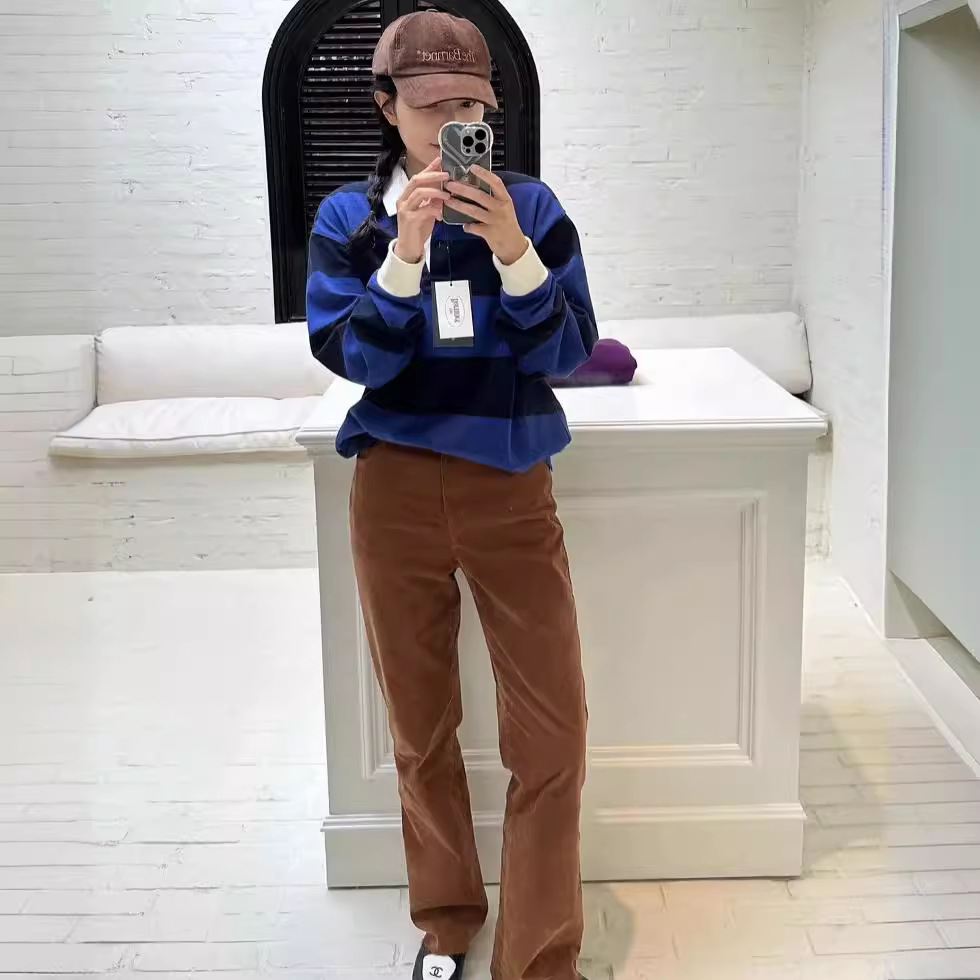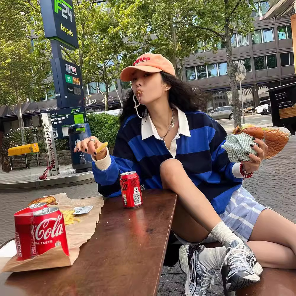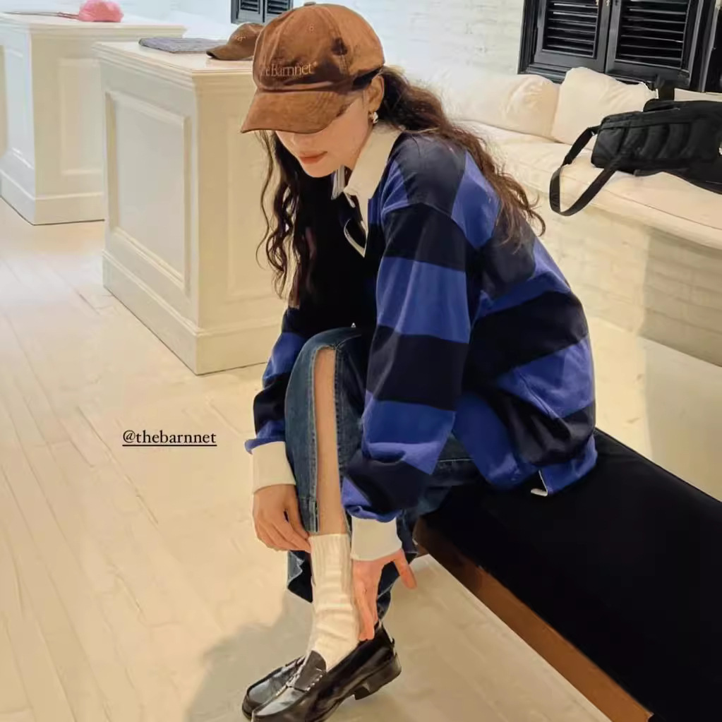 | nameOriginal | South Korea niche 24 early spring loose retro age-reducing casual striped polo collar long sleeve top |