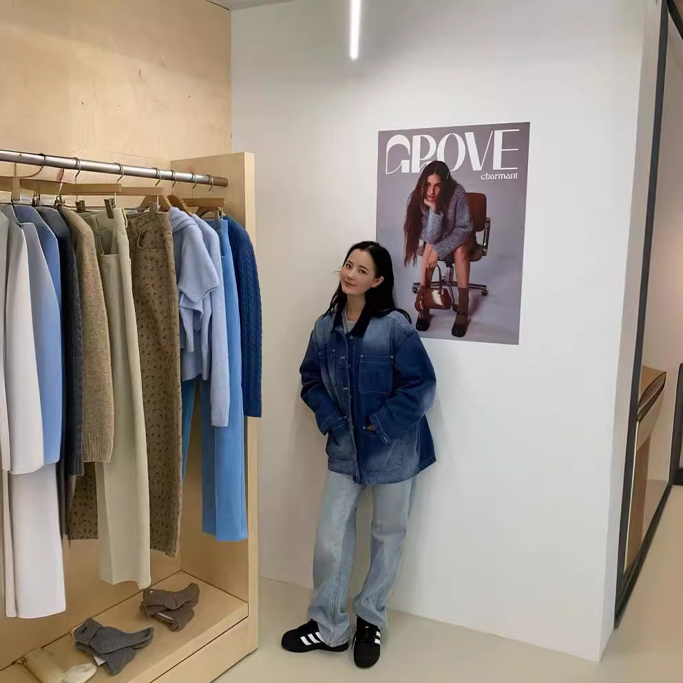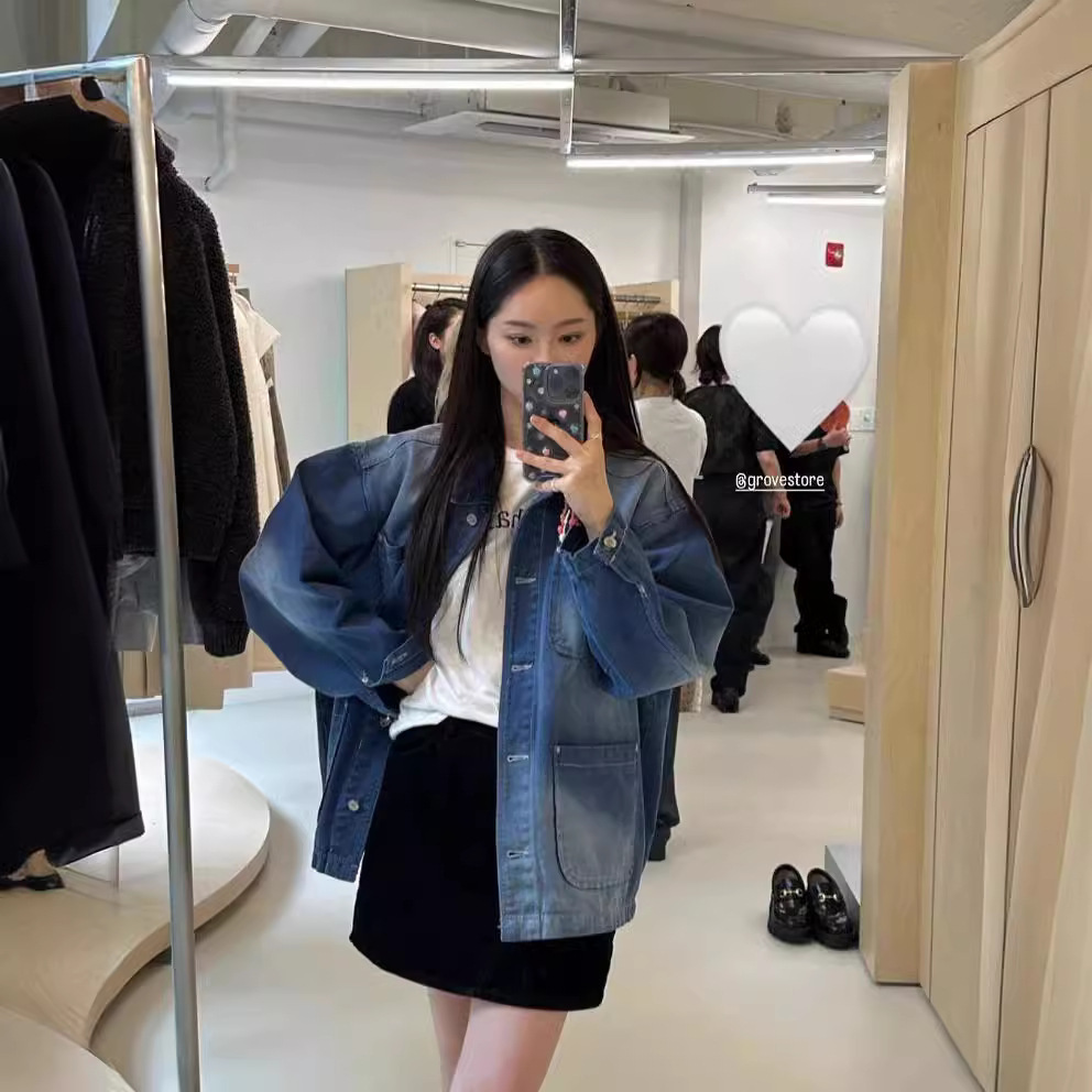 ~~~~~ South Korea niche 24 new casual blue lapel loose single-breasted Denim coat top for women