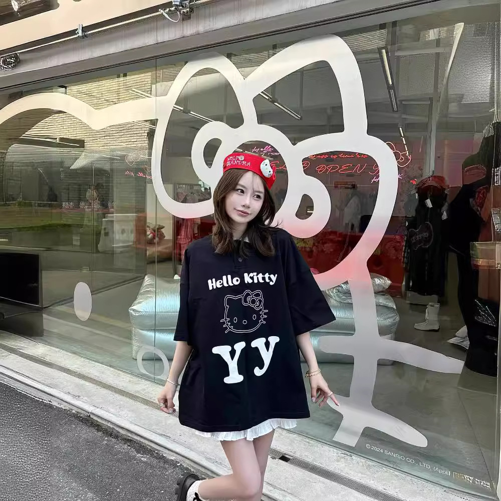 | nameOriginal | South Korea Niche 24 New Hello Kitty K Pattern Contrast Lapel Loose Casual Polo Short-sleeved T-shirt |