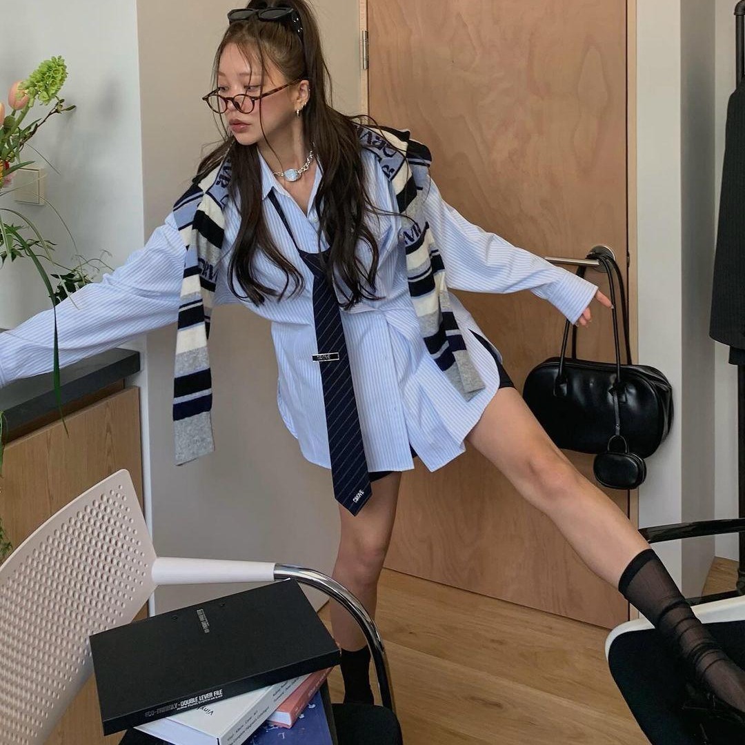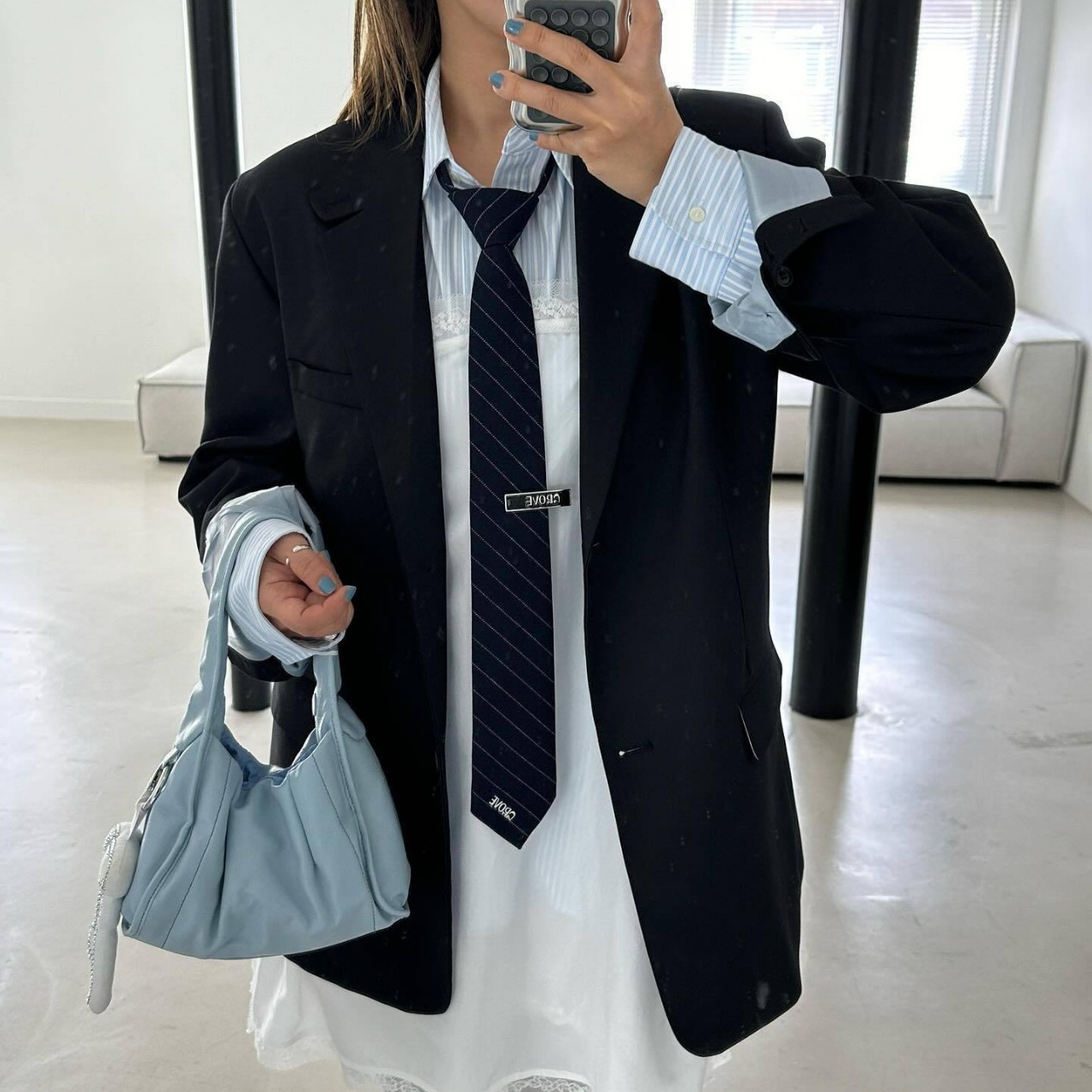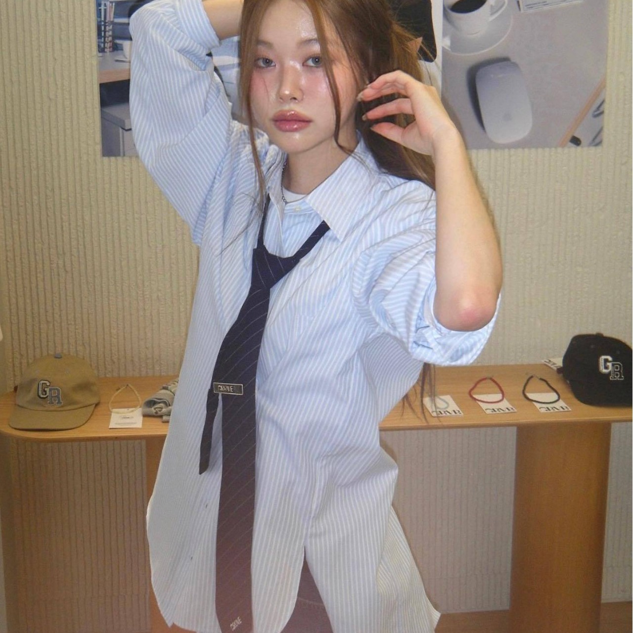 | nameOriginal | South Korea Niche 24 New Vintage Academy Style Embroidered Oblique Striped Zip-style Tie-free for Lazy People |