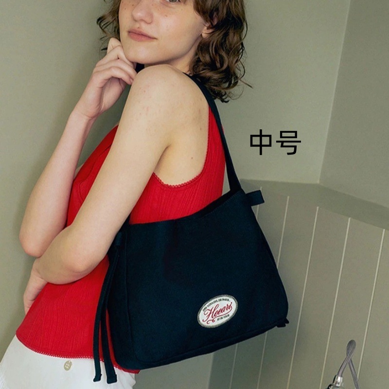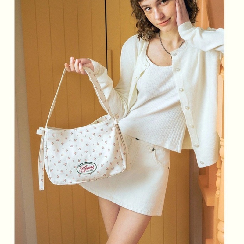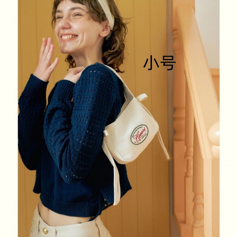 South Korea Niche Design Canvas Bag Embroidered Letters Ribbon Mini Underarm Shoulder Bag Fresh and Sweet Hand Bag for Women