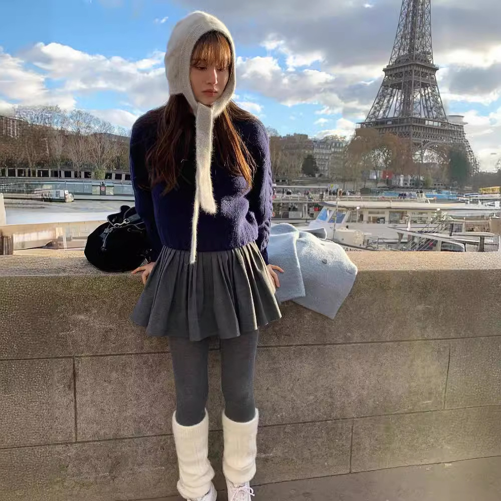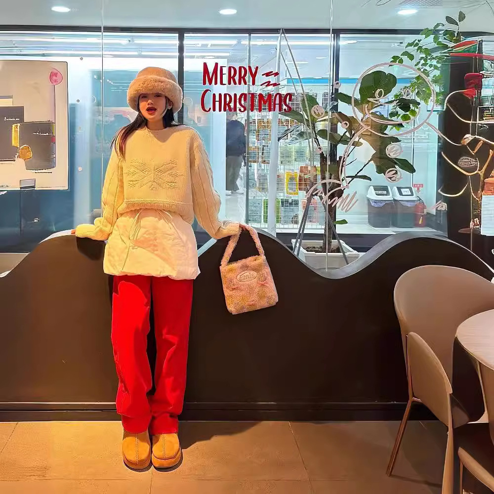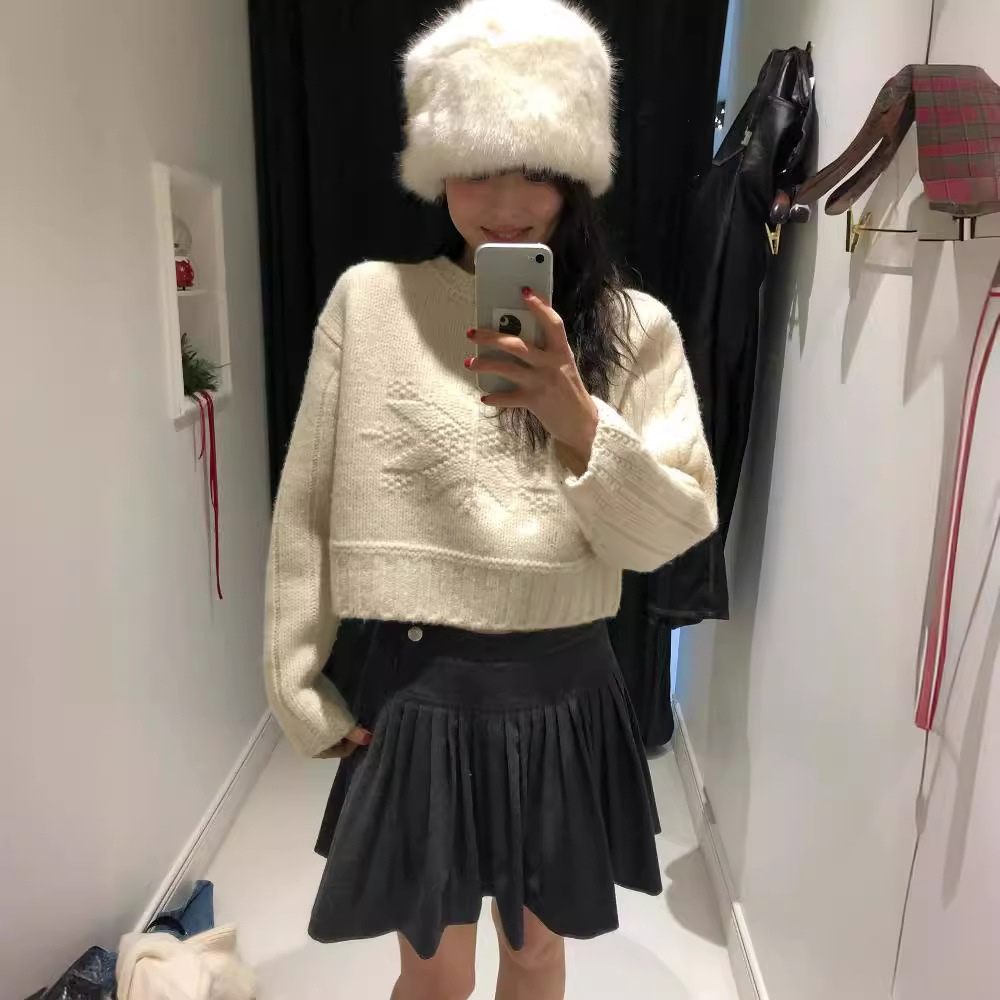 South Korea niche eight Milk New snowflake round neck pullover wool knitted sweater women’s short top