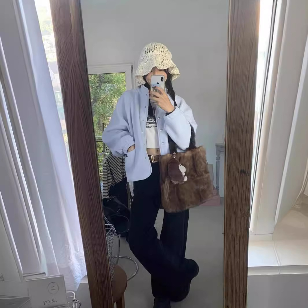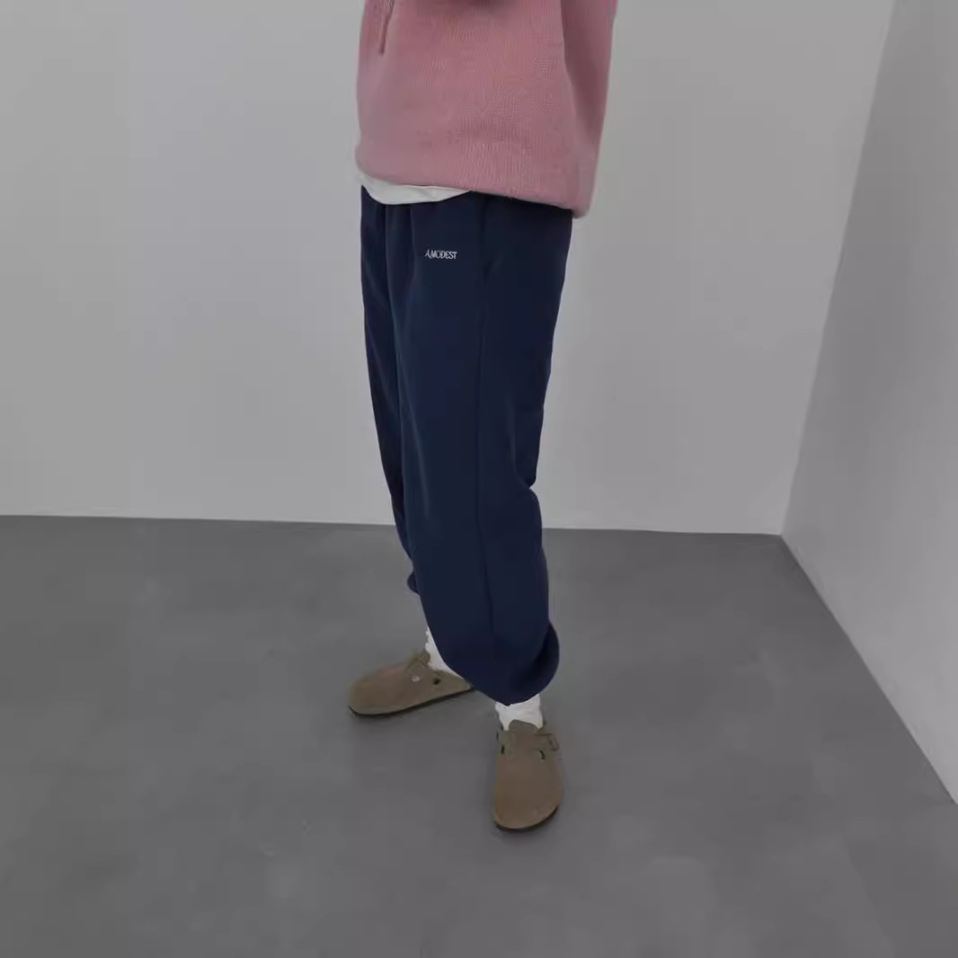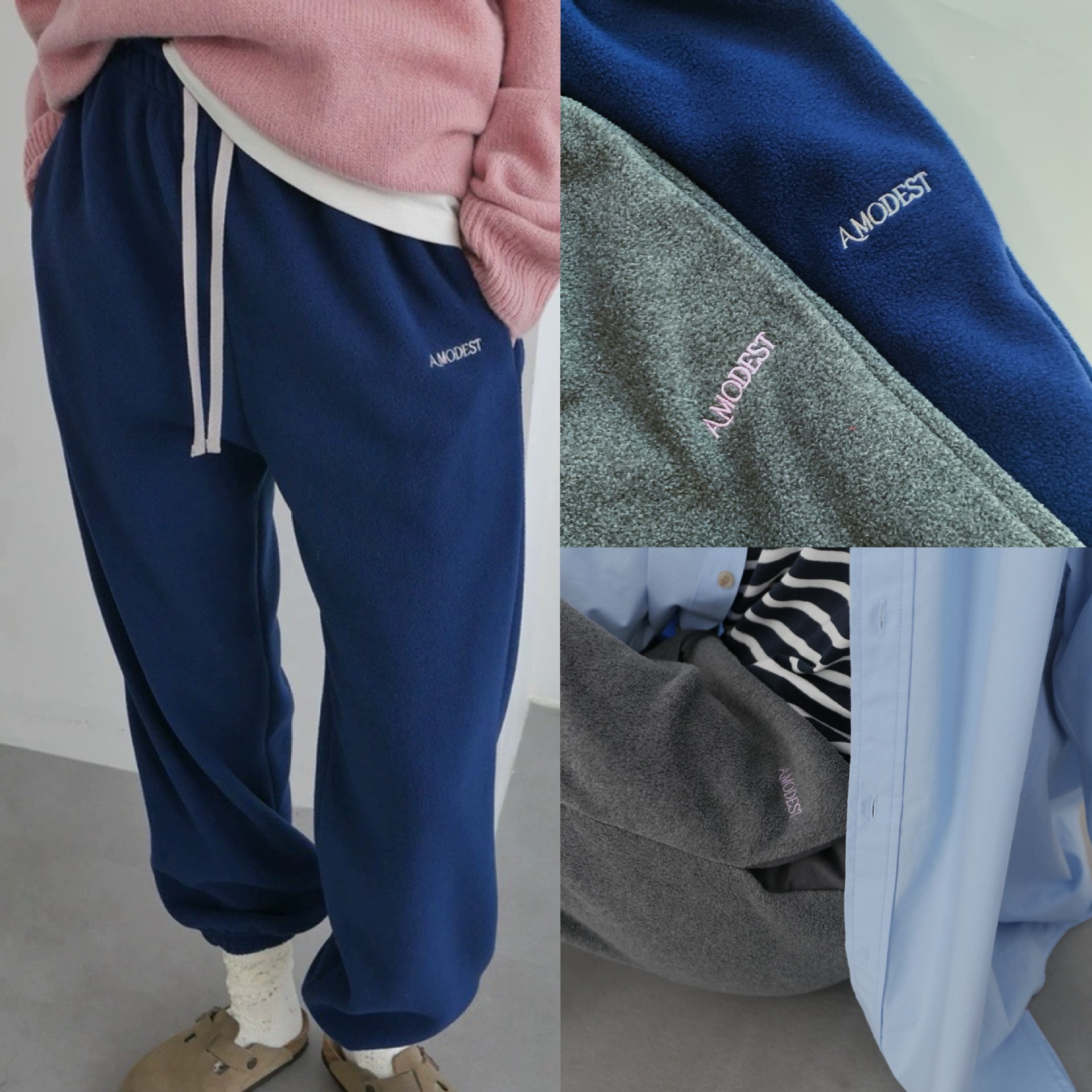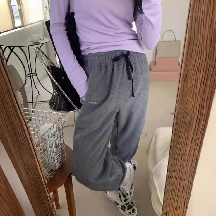 South Korea niche new loose slimming warm elastic waist polar fleece embroidered sports sweatpants trousers