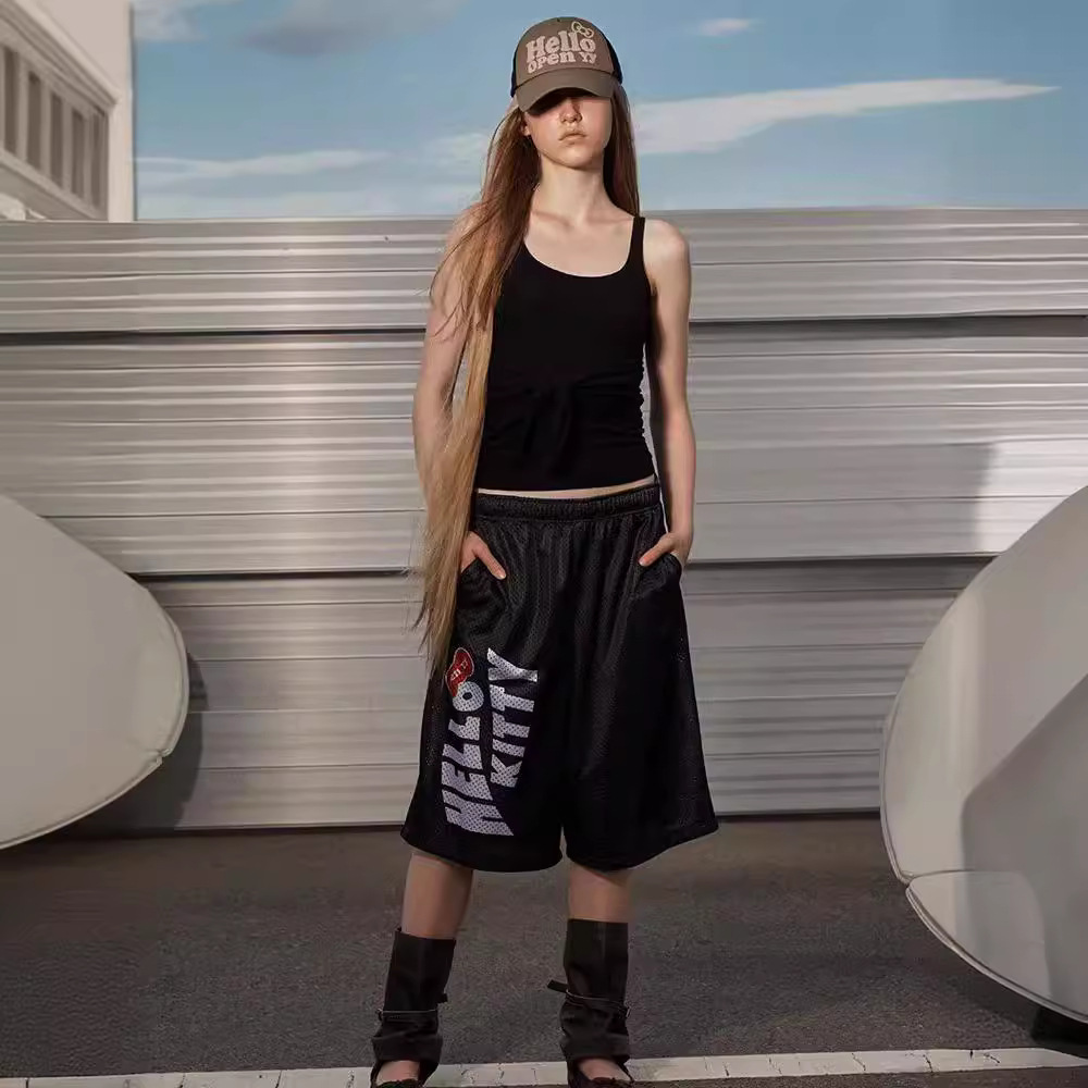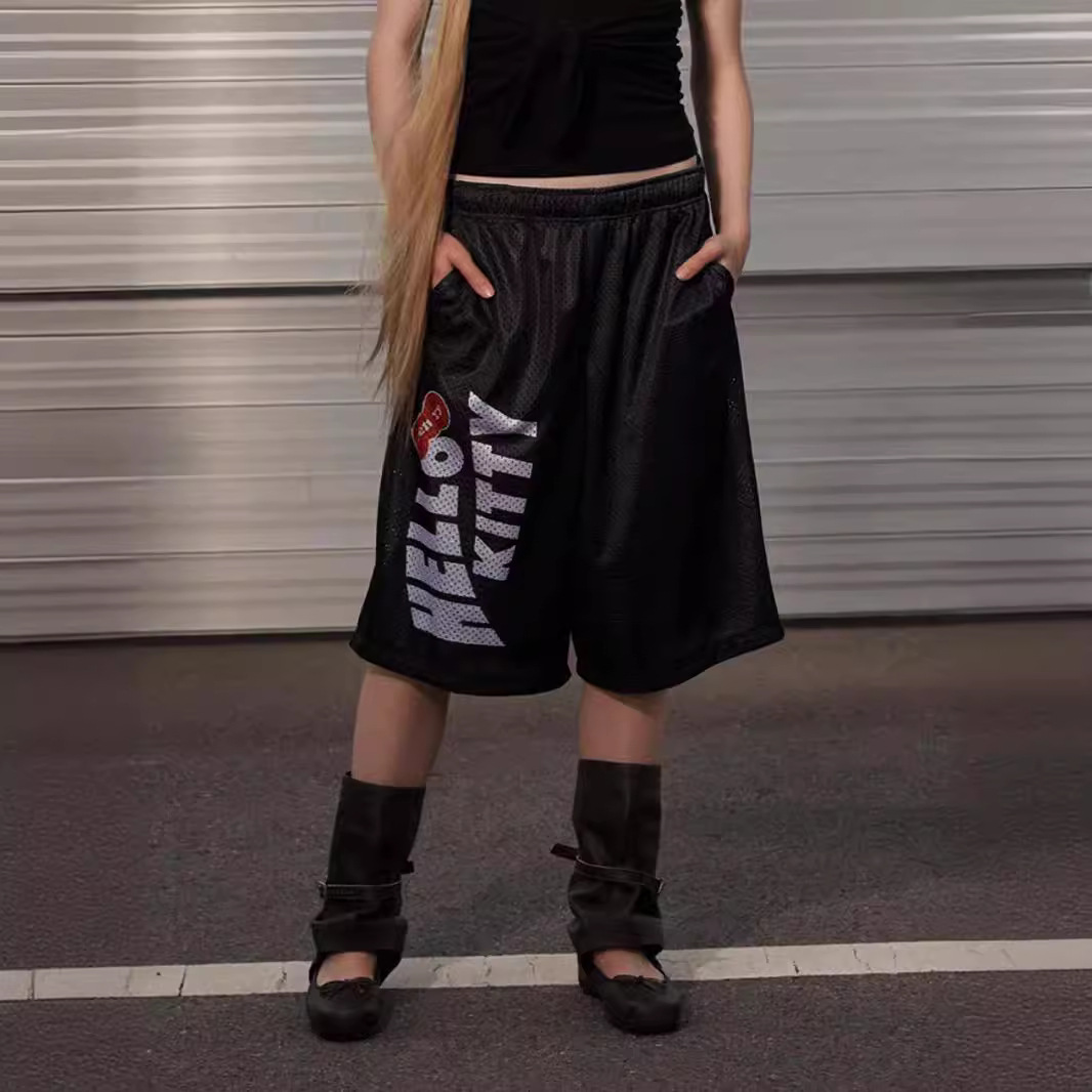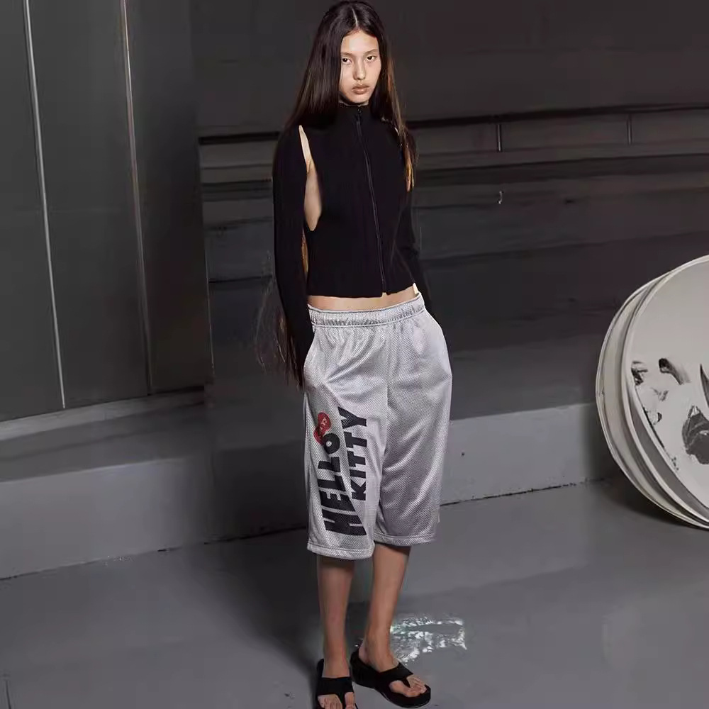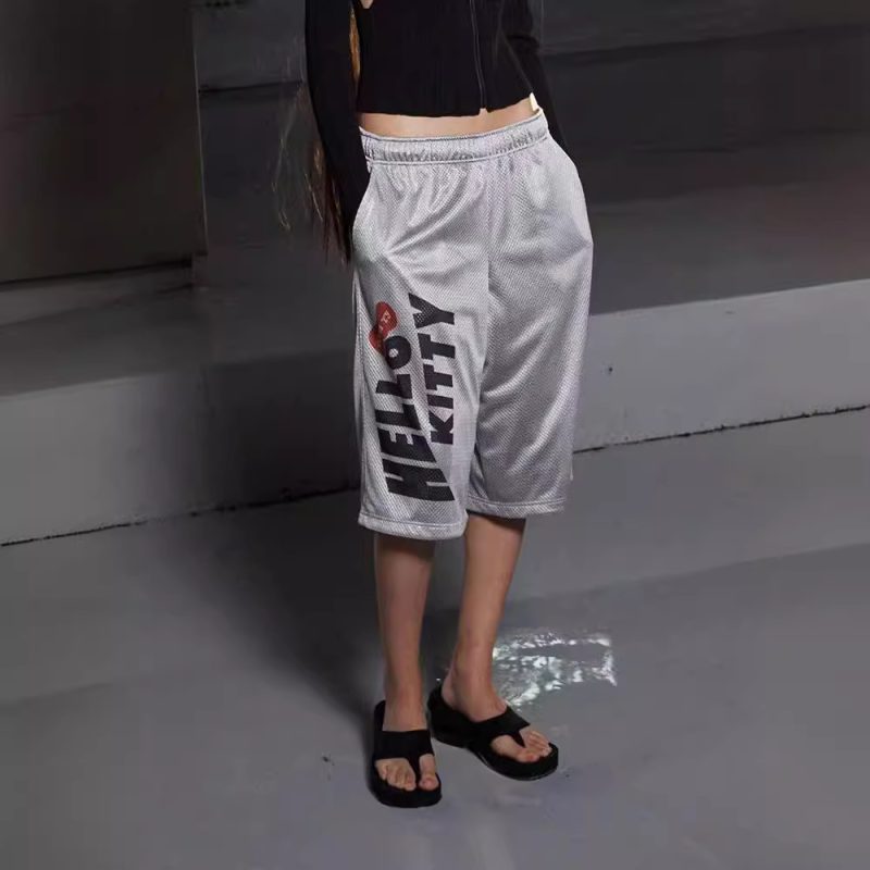 South Korea Niche ope * yy Kitty Joint Printed Casual Thin Straight Shorts Sports Shorts