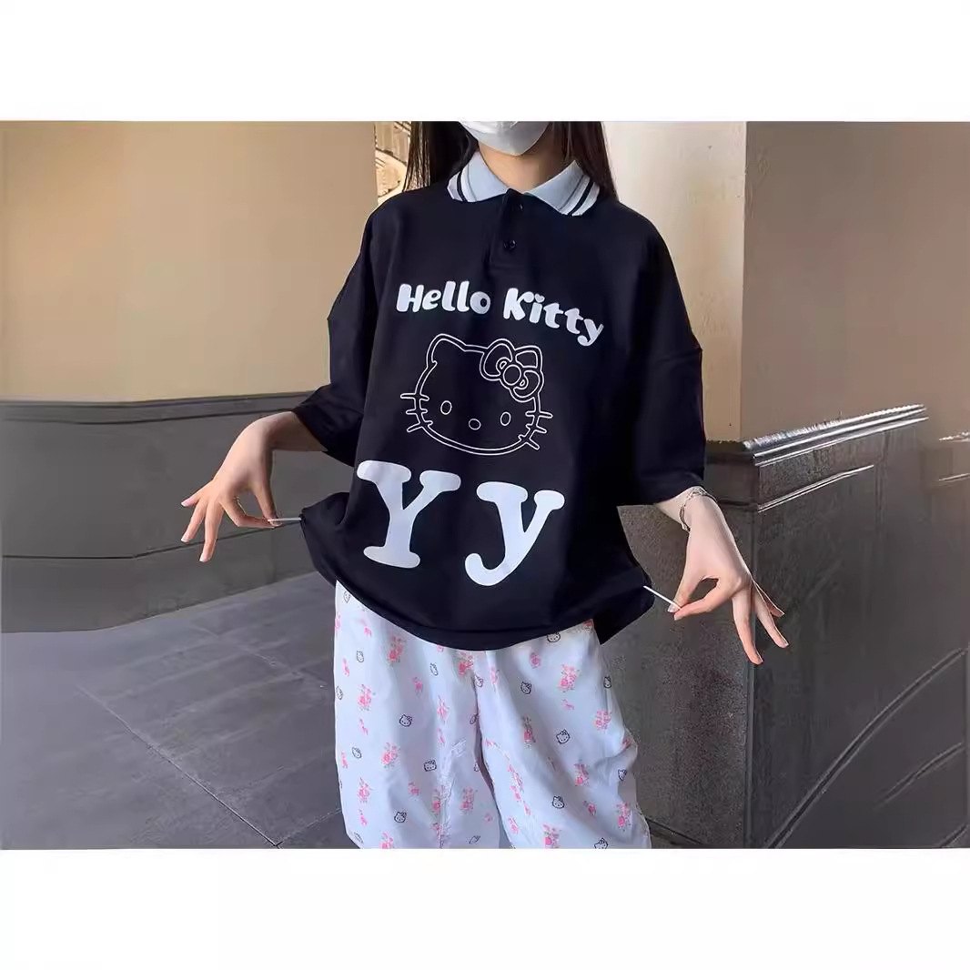| nameOriginal | South Korea OPEN YY Yu Shuxin Sun Caiying with hello printed color contrast loose short sleeve POLO shirt T-shirt tide |