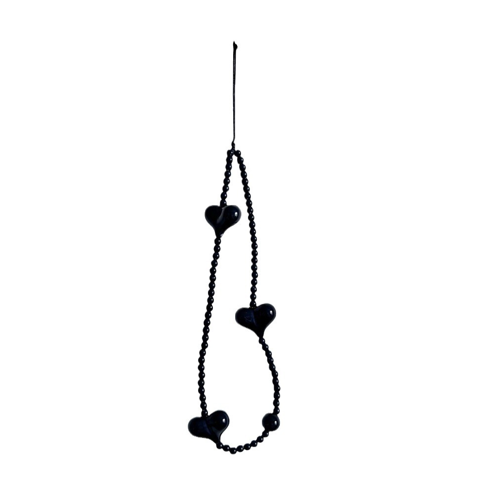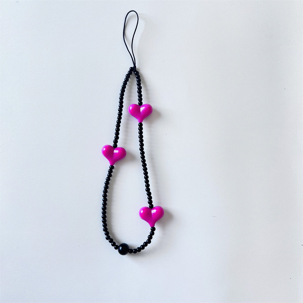 | nameOriginal | South Korea rose Park Caiying same style mobile phone chain pendant black love beaded short wrist chain wind pendant mobile phone rope |