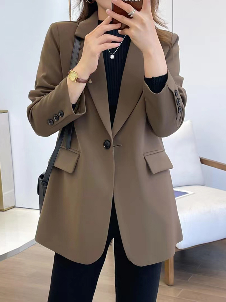 South Korea suit top 2024 spring clothing fried street loose casual all-match Brown split suit jacket women's fashion