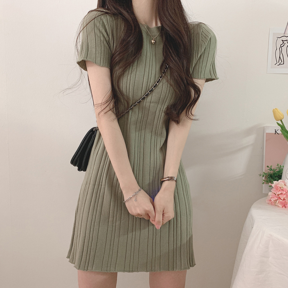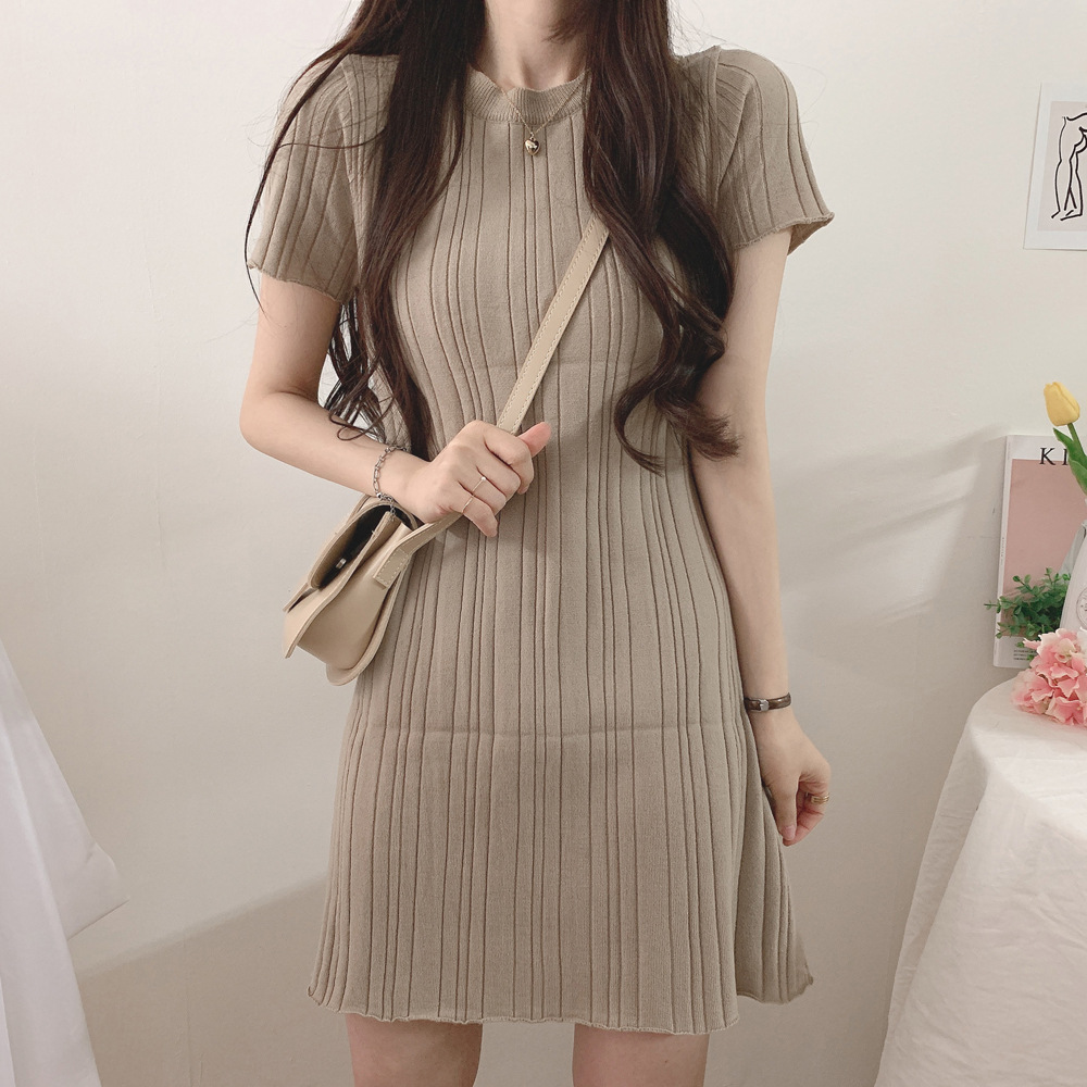 | nameOriginal | South Korea Summer Gentle Elegant Round Neck Pit Slimming Ice Silk Thin Short-sleeved Hip Knitted dress Women |