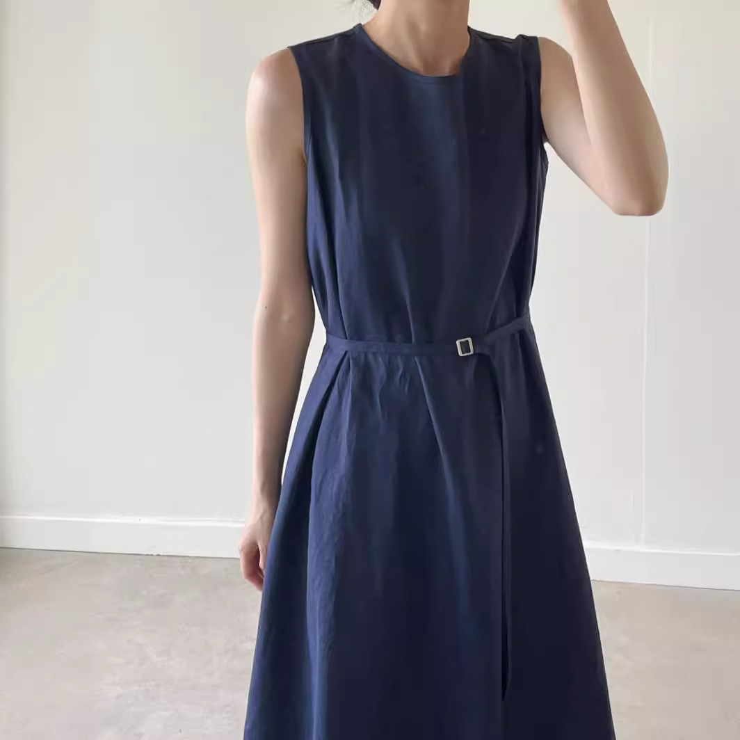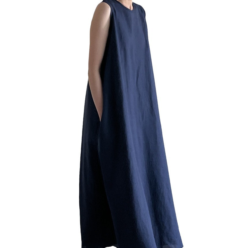 South Korea summer new design niche thin sleeveless long lace cotton linen dress