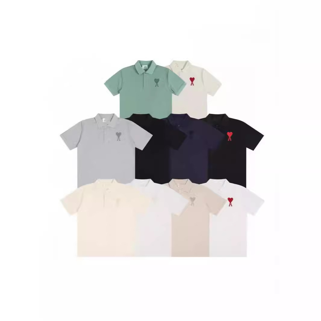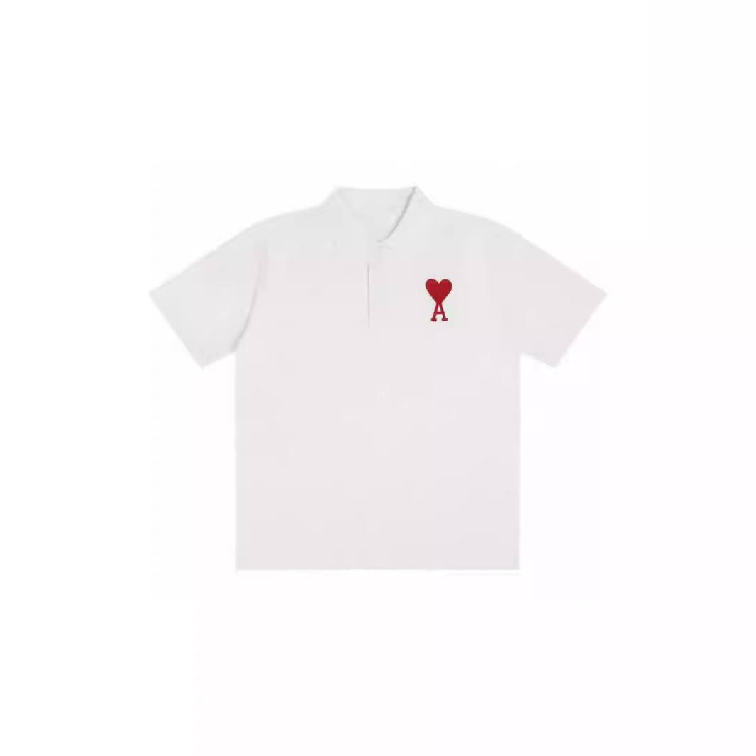 South Korea Trendy Ami Short-sleeved Small Love Embroidered POLO Shirt Cotton Loose Breathable Lapel Women’s T-shirt Star Same Style