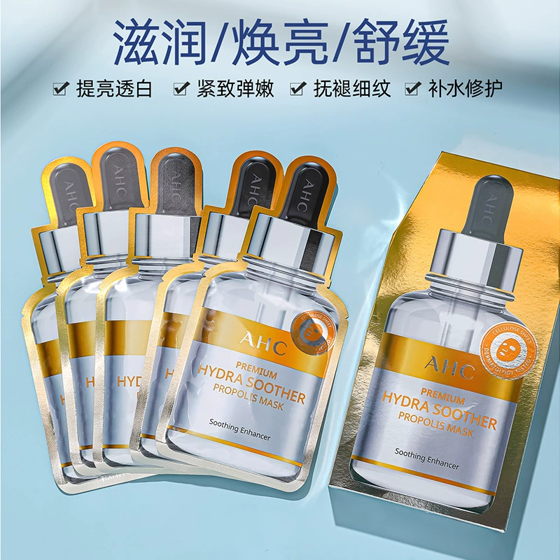 | nameOriginal | South Korea's AHC Aihe Pure Third Generation B5 Hyaluronic Acid Propolis Gold Moisturizing Mask soothes, moisturizes and hydrates the skin |