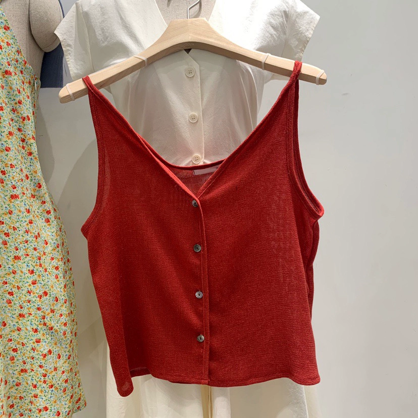 | nameOriginal | South Korea's Dongdaemun 2024 new summer fashionable V-neck buttoned sleeveless camisole women's all-match outer top |