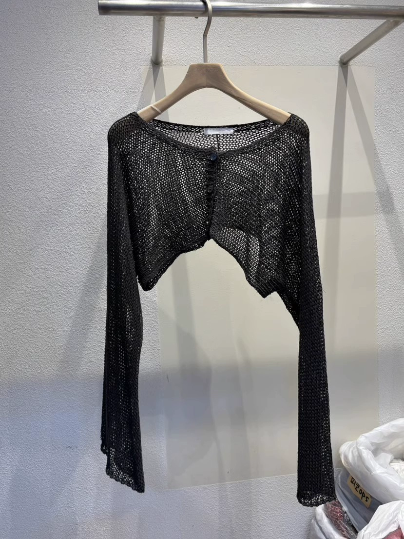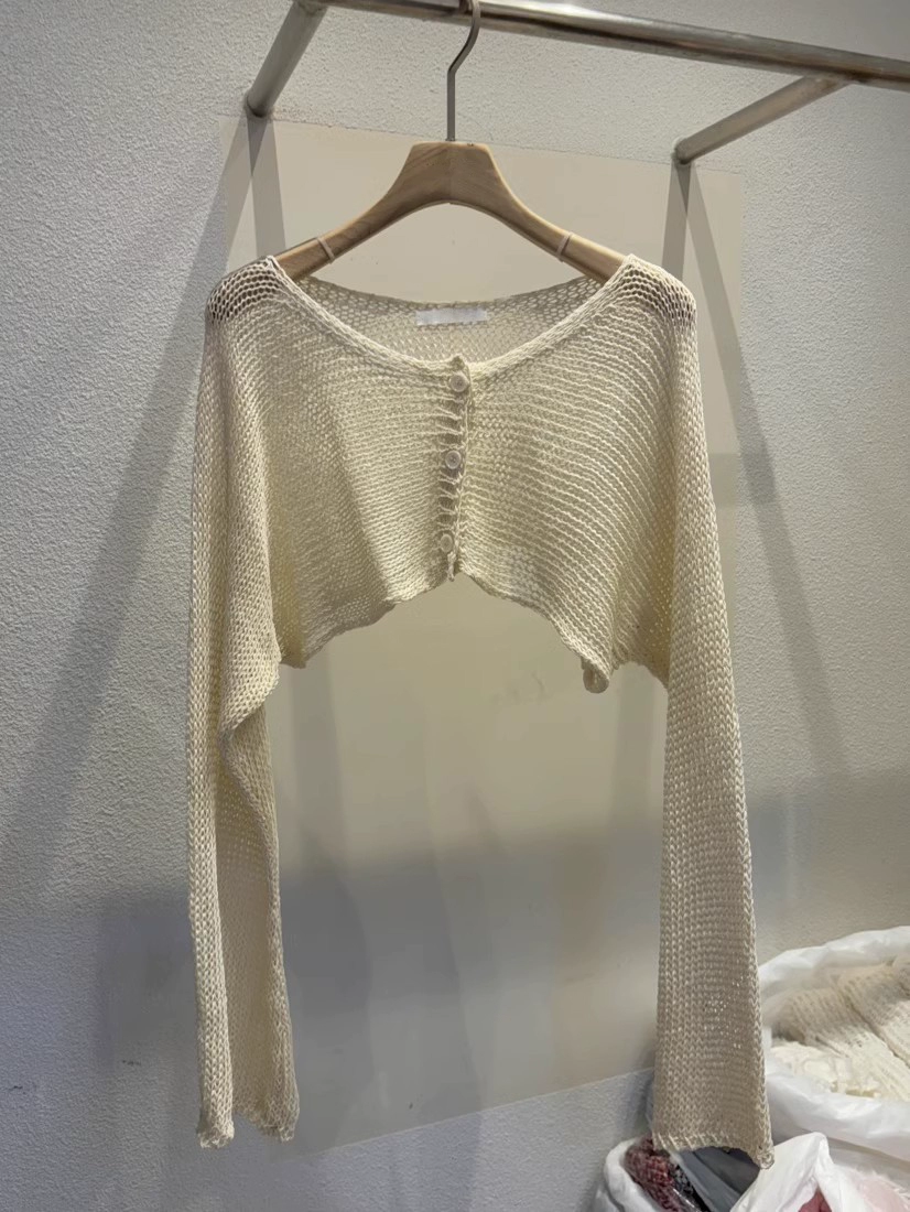 | nameOriginal | South Korea's Dongdaemun 2024 summer new style fashionable hollow short buttoned outer wear sun protection knitted cardigan top for women |