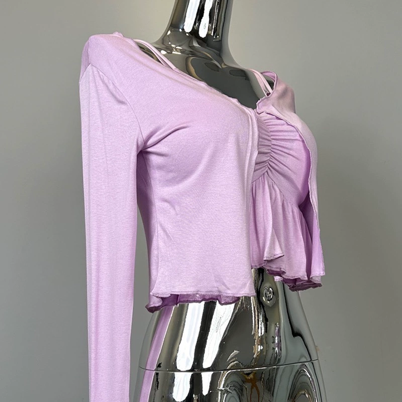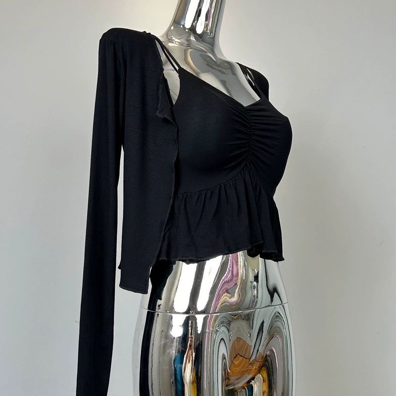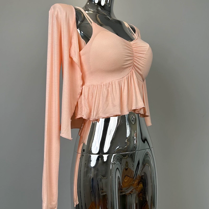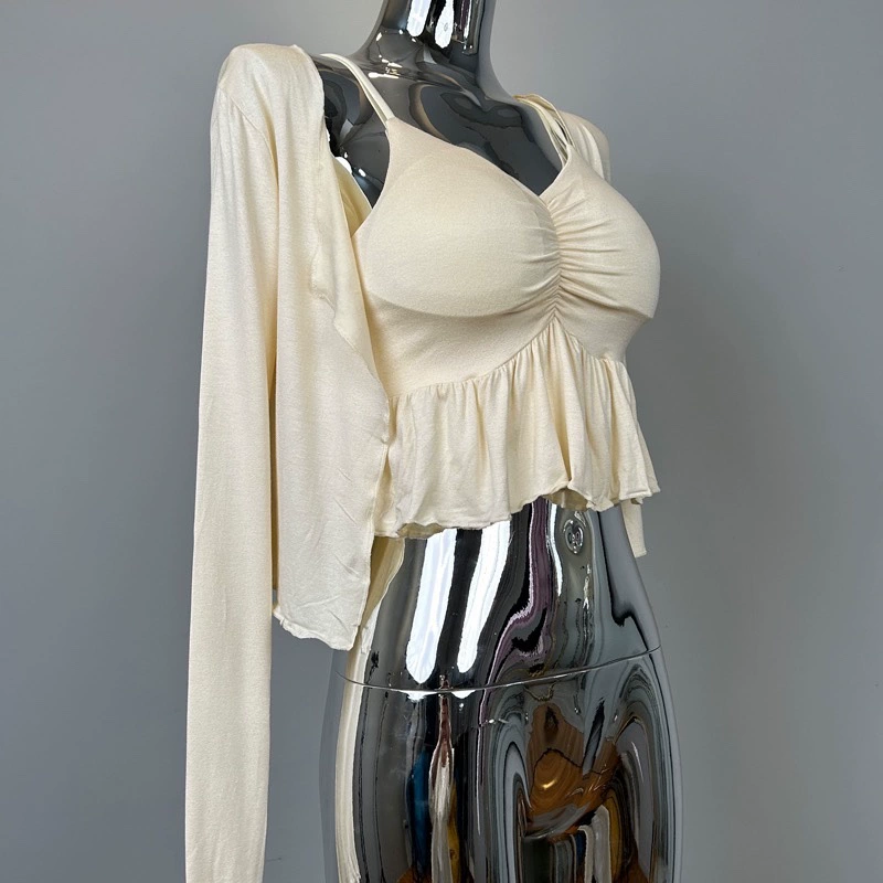 | nameOriginal | South Korea's Dongdaemun new sexy figure-showing feminine ruffled camisole + cardigan two-piece suit for women |