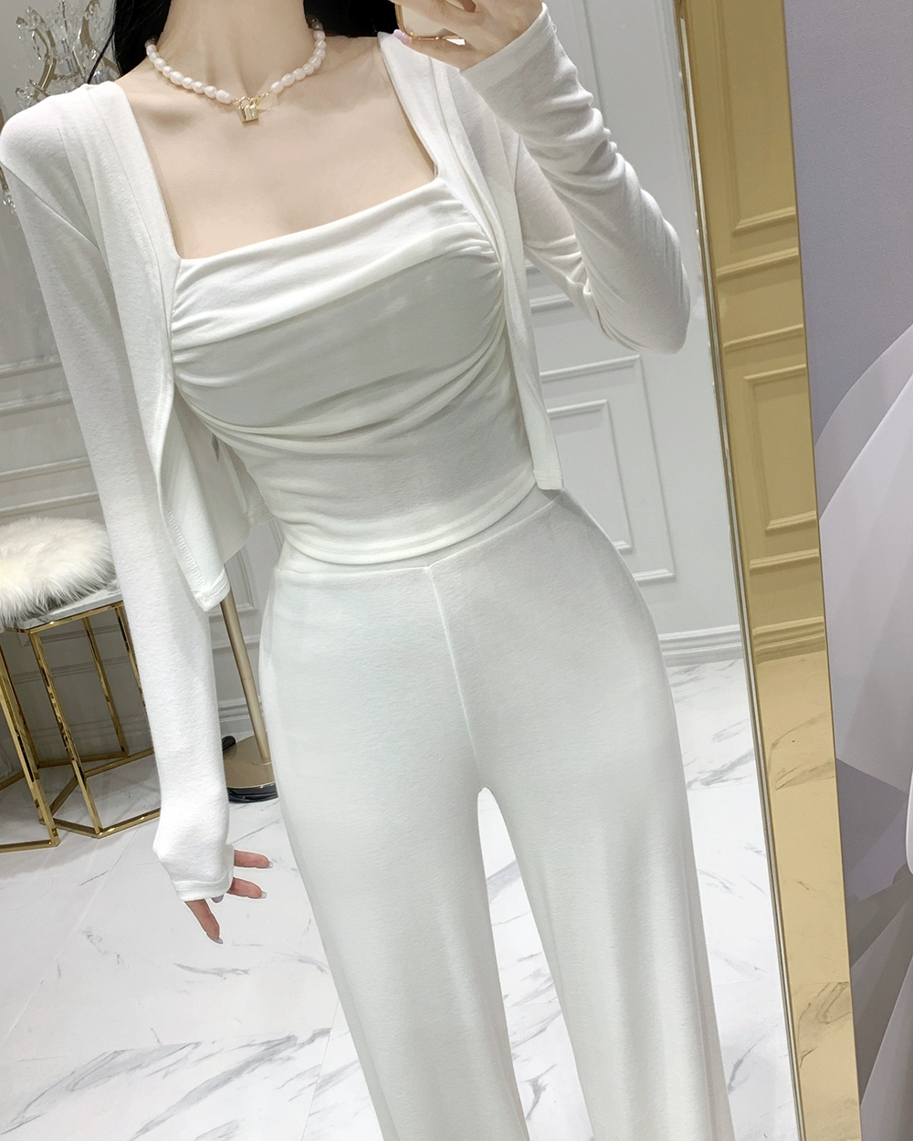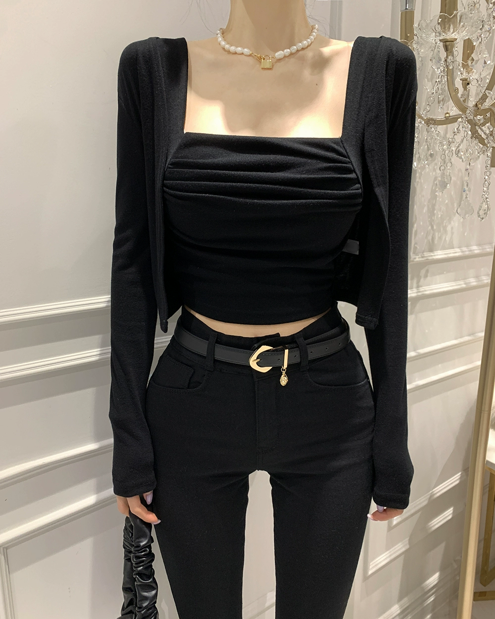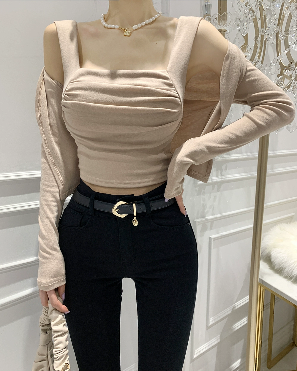 | nameOriginal | South Korea's Dongdaemun sexy new fashion pleated suit two-piece tight slimming square collar vest + cardigan |