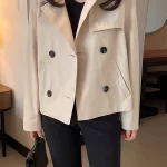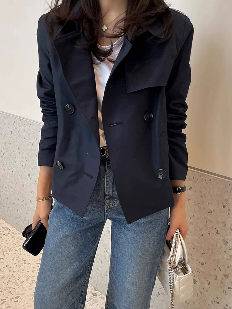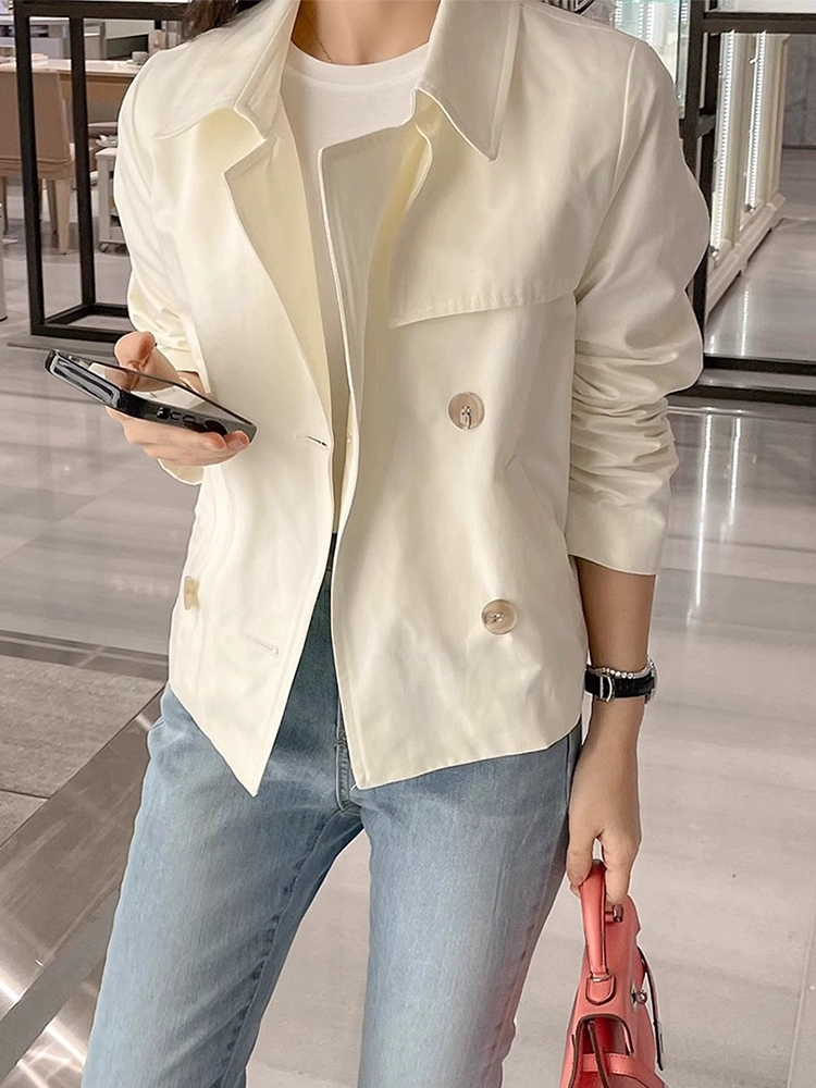 South Korea’s Dongdaemun spring retro niche suit collar double-breasted loose casual short long-sleeved windbreaker jacket for women
