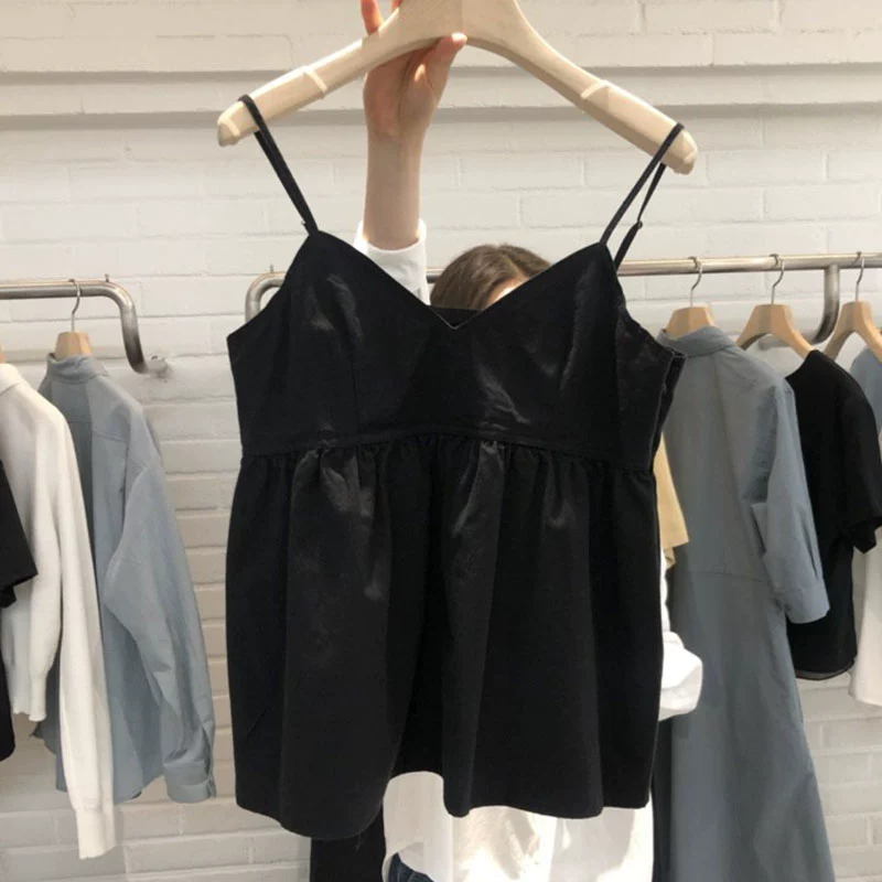South Korea’s Dongdaemun Summer Wear New Sweet Loose White Short Style V-neck Sleeveless Camisole Women’s Top