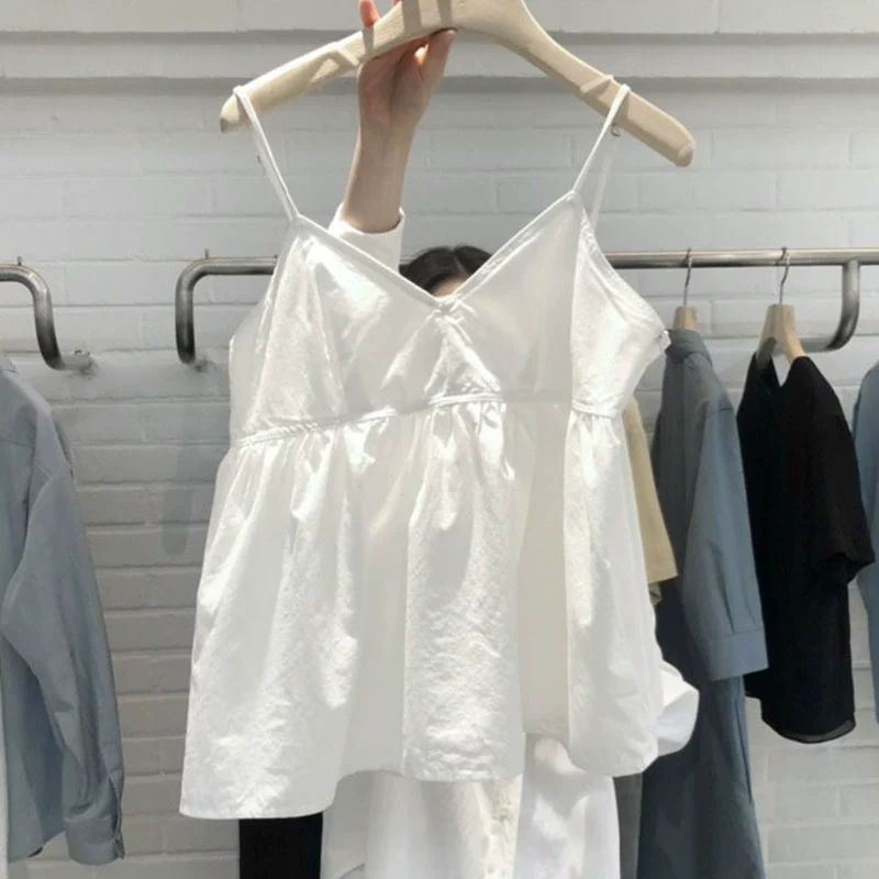 South Korea's Dongdaemun Summer Wear New Sweet Loose White Short Style V-neck Sleeveless Camisole Women's Top