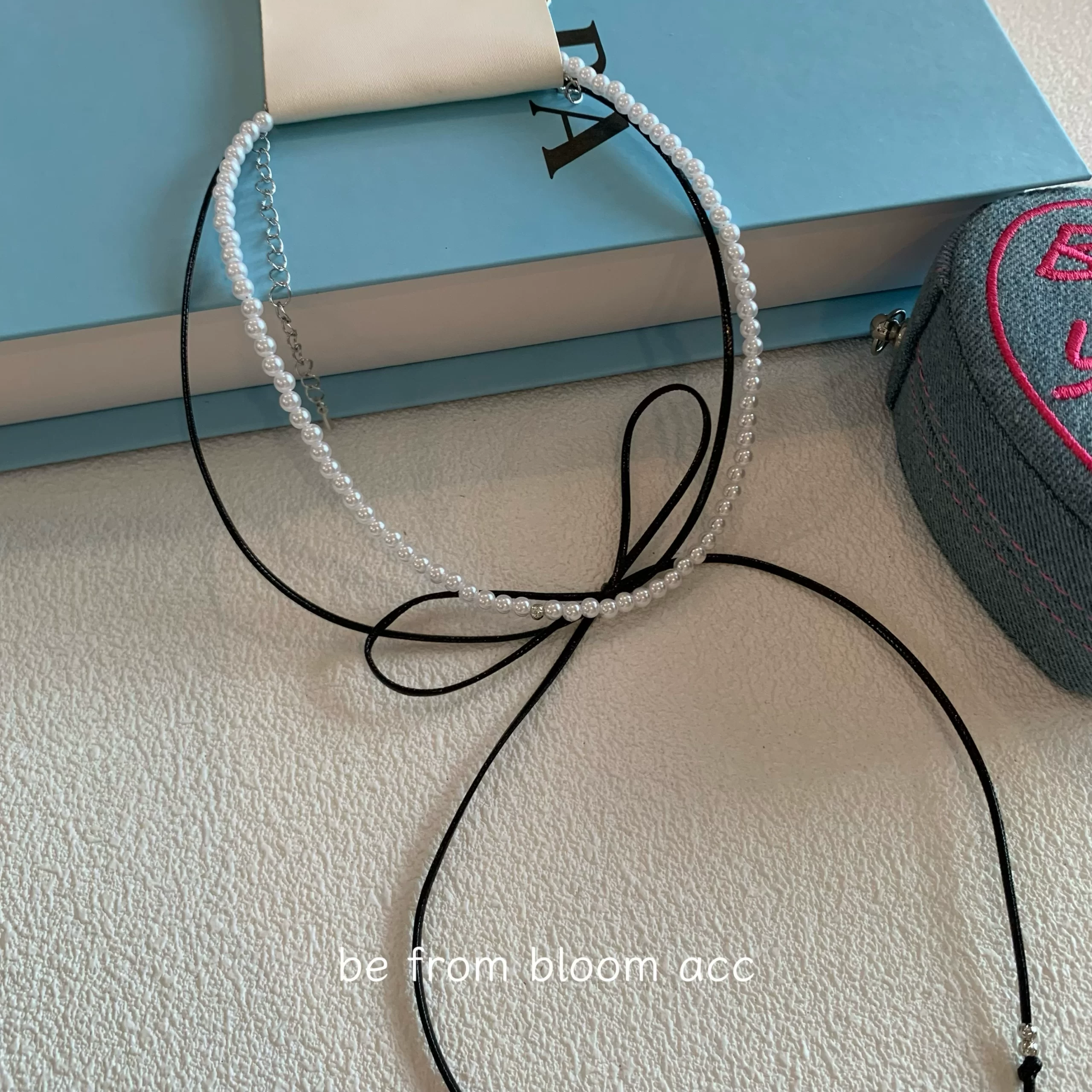 | nameOriginal | South Korea's Dongdaemun, the same sweet and cool style PU leather bow pearl double-layer necklace, the same style as the ins blogger's clavicle |