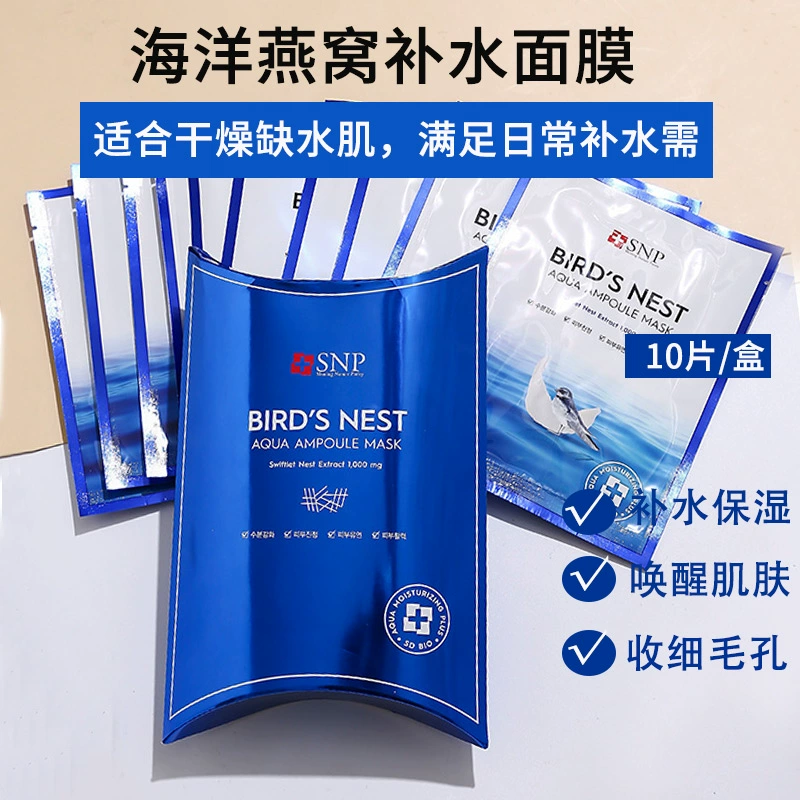 South Korea's SNP Marine Bird's Nest Ampoule Essence Mask 10 Pieces Deeply Hydrating and Moisturizing Shrinks Pores and Firms