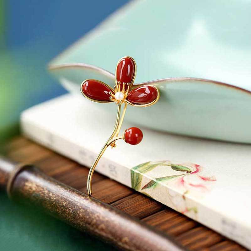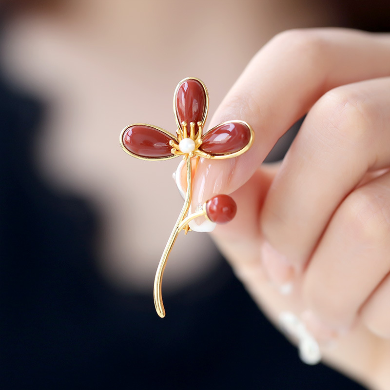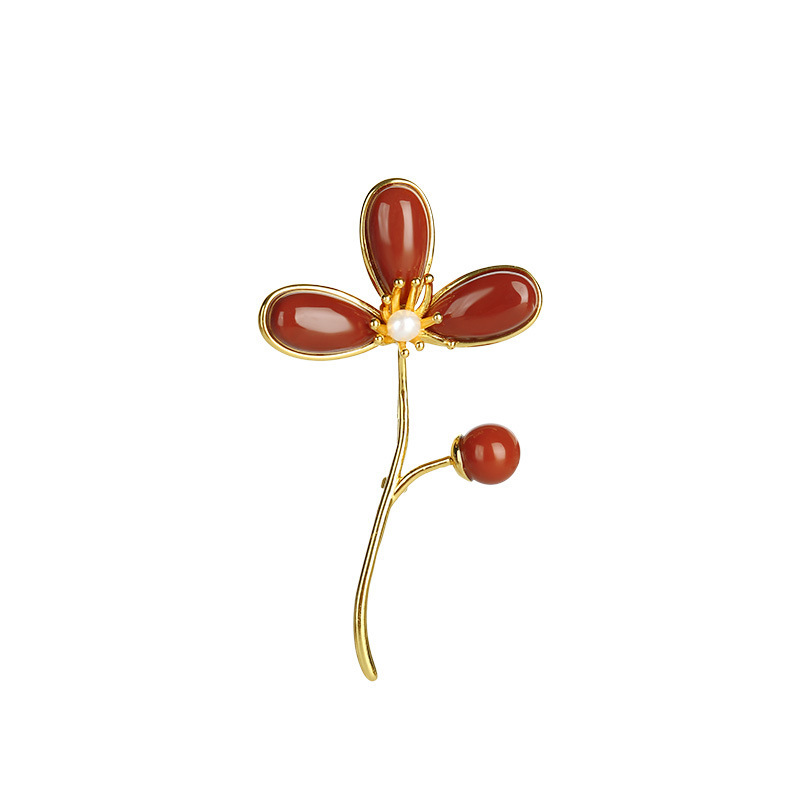 | nameOriginal | South Red Agate Brooch Vintage Palace Style Inlaid Pearl Agate Women's Flower Brooch Fashion All-match |
