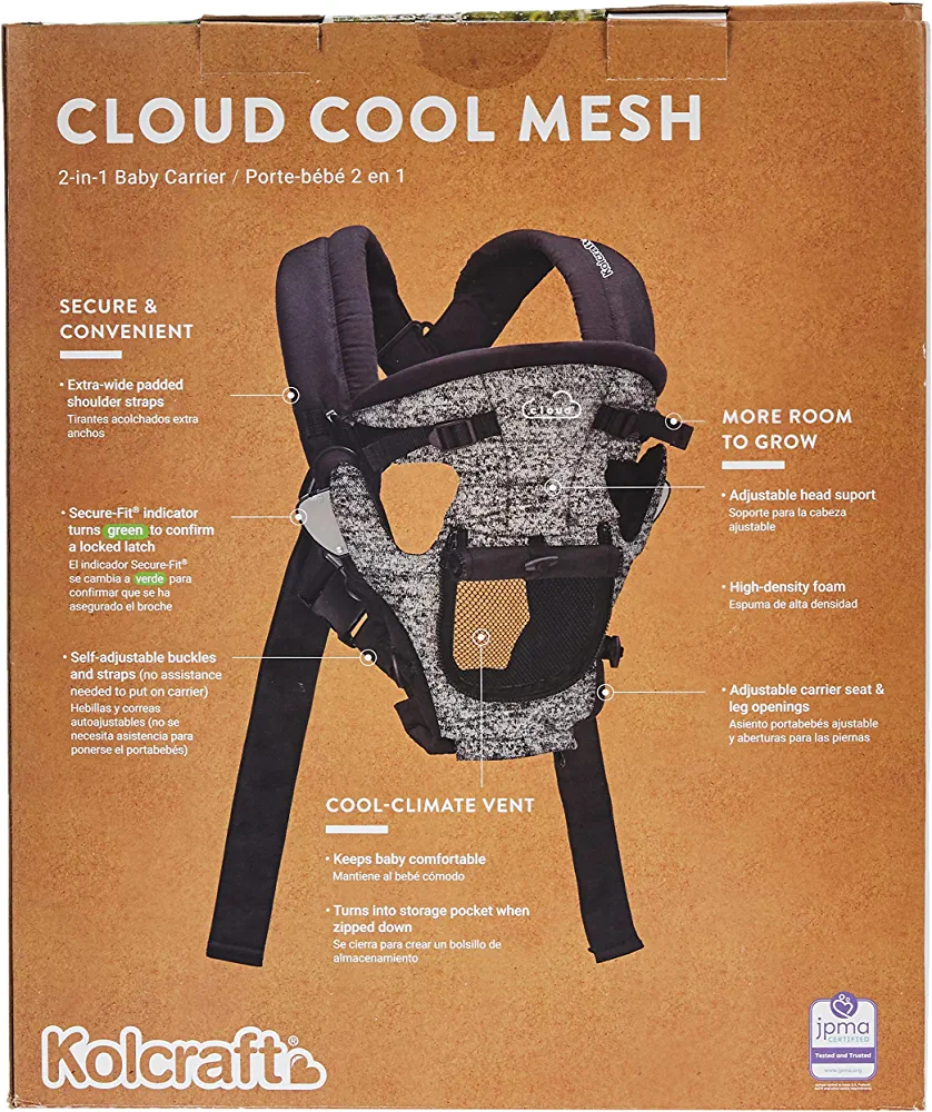 Introducing the Kolcraft Cloud Cool Mesh Baby Carrier – the perfect solution for comfortable and hassle-free babywearing. With its innovative roll-up pocket and cool mesh window, this carrier provides optimal airflow during warm weather, ensuring your baby stays cool and comfortable.