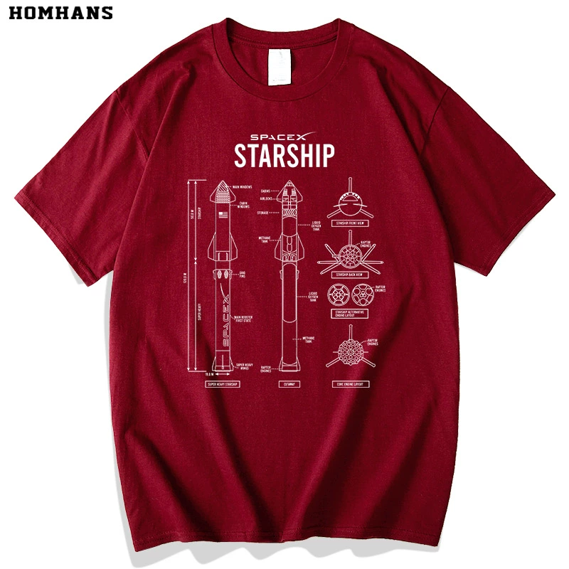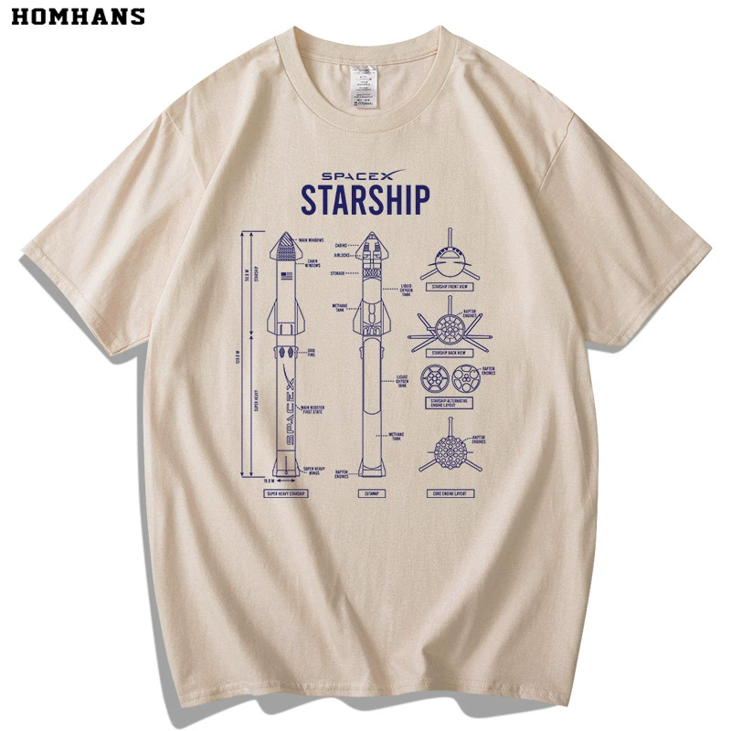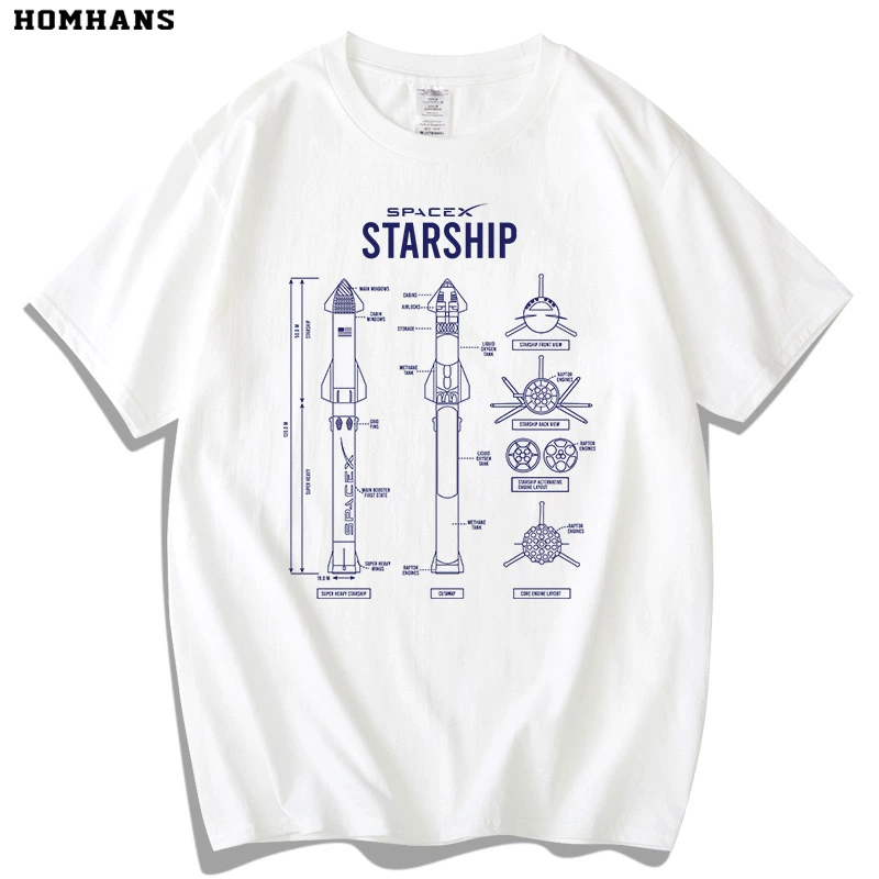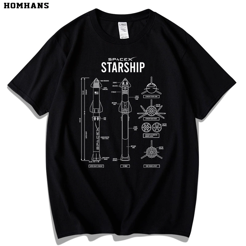 | nameOriginal | SPACEX Starship Musk Starship Mars Immigration Space Rocket Blueprint T-shirt Personalized Men's Summer Cotton |