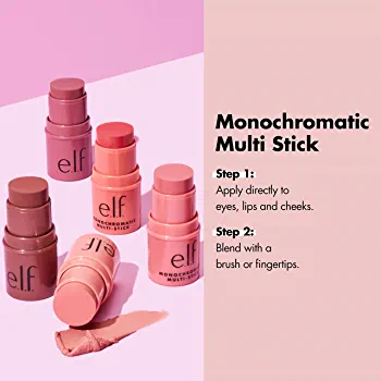 | descriptionOriginal | Description The Monochromatic Multi Stick is your secret weapon to a flawless face. This versatile, multi-use stick can be used on your eyes, lips, and cheeks for a soft, glowy, monochromatic look. After you apply your foundation and setting powder, apply as desired. For a more dramatic look, use along with a bronzer and highlighter. e.l.f. makes the best of beauty accessible to every eye, lip, and face. Your originality is infinite, and we are inspired by what makes you unique. From the early explorer to the trend-obsessed beauty junkie—glam or bare faced, minimalist, maximalist and every look in between—we are for every eye, lip, and face. Proud to be 100% vegan and cruelty-free, worldwide. |